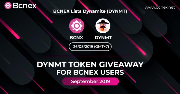 After listing Dynamite, Bcnex holds an exciting offer to all Bcnex-ers!!! The DYNMT Token giveaway this September.