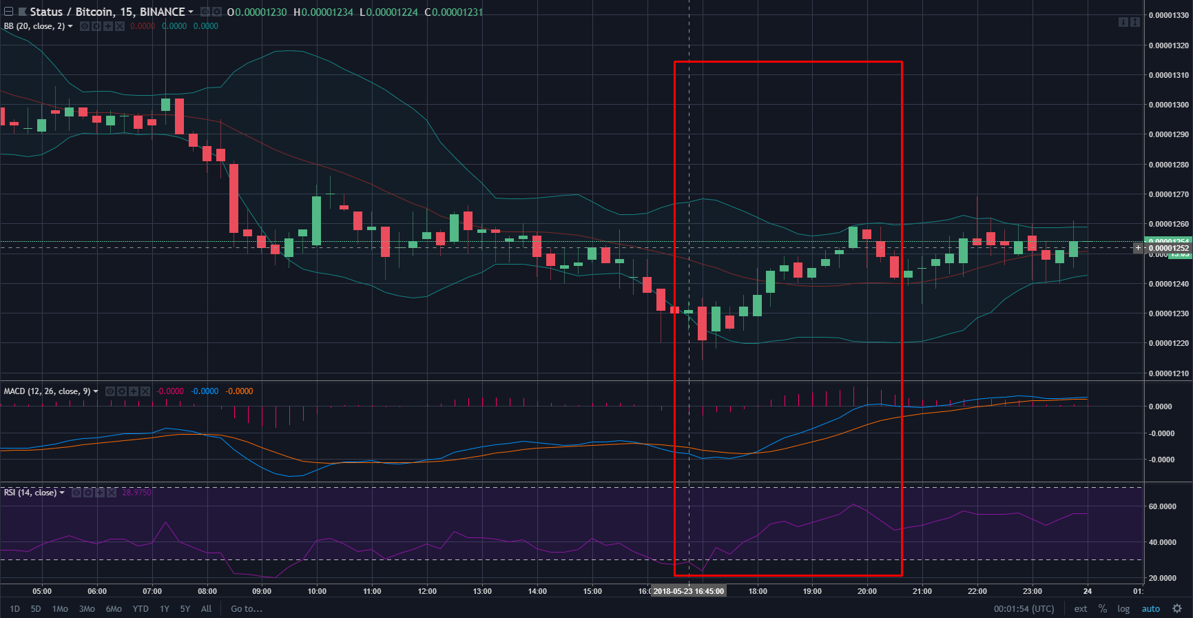 When I'm looking for a buy-in point, I'm always looking at the chart and trying to predict where it will it the bottom BB for a chance of shooting up, and I look for values: