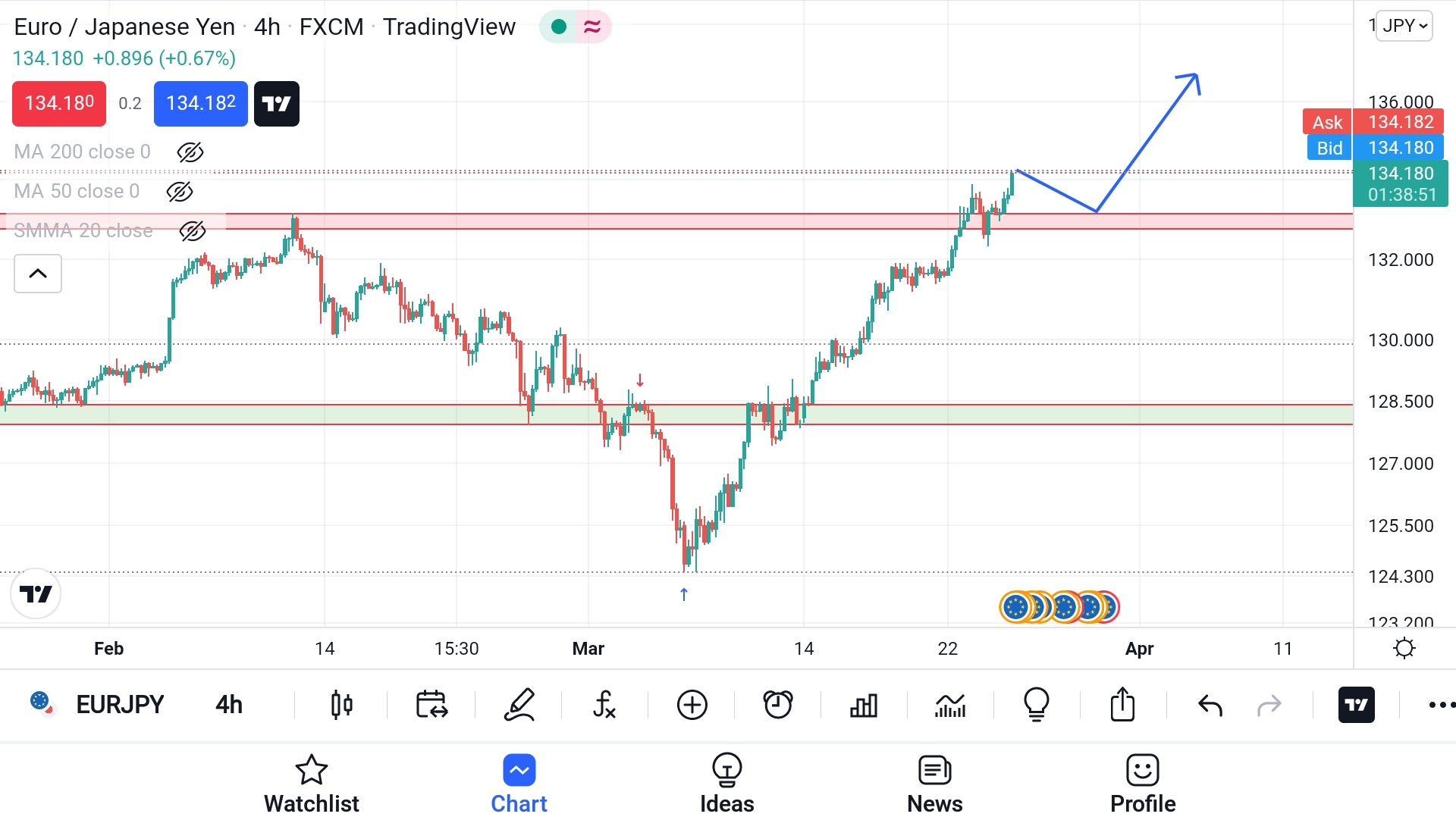 AUDJPY. Price is skyrocket here. Main reason is that AUD is a commodity currency and the price commodities like oil, gold, silver is increasing because of supply issue (for Russia-Ukraine war), so AUD is appreaciating. It has made 970 pips without any proper retracement move. This is worst situation for Japanese Currency. I have 3 positions opened in this pair which I am going to talk about in my next post regarding trading.