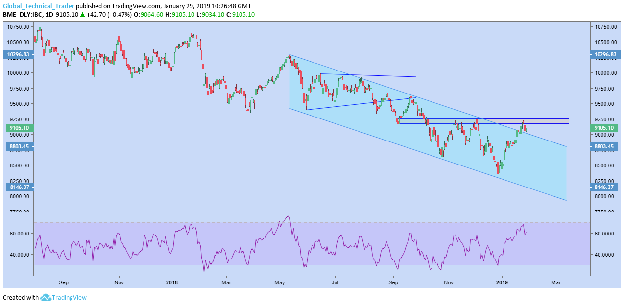 France, whilst remaining below a major long-term trend line drawn of subsequent peaks beginning way back in 2000, has managed to break out of it's downtrend that began in September last year. Any move back above the long-term trend line would be extremely bullish and the most recent price action would then have to be viewed as a failed breakdown.