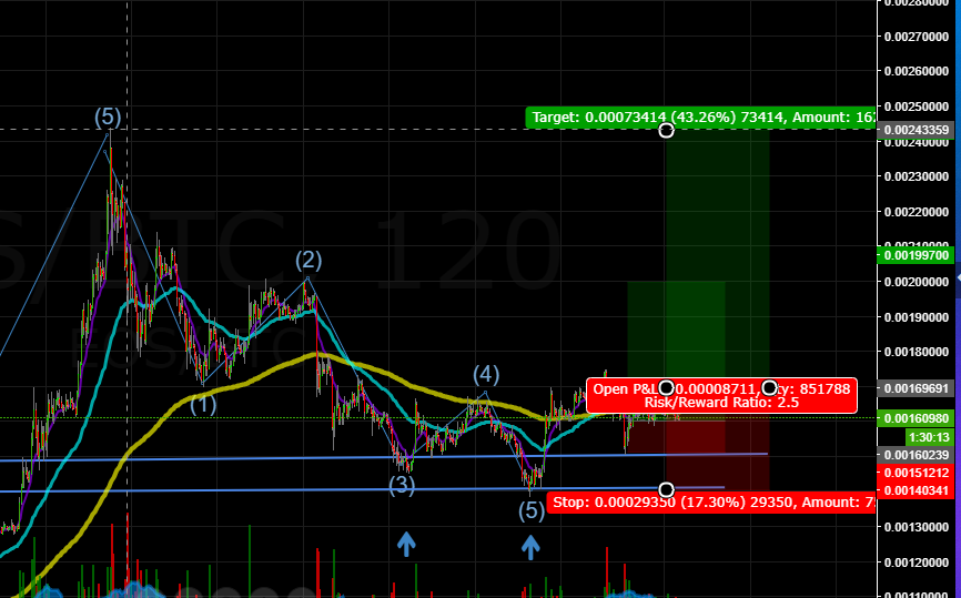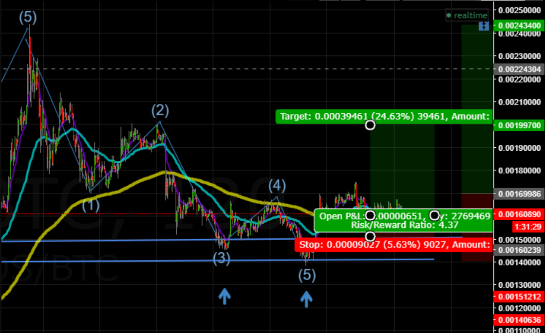 This is my bullish view and my stop loss is at my wave 5 count for a 10% loss and take profit is on the wave 2 count for a 20% profit and 2nd target at around 40-50% gain. This is my partial amount and as soon as volume is present on the break out I'll take a bigger position.