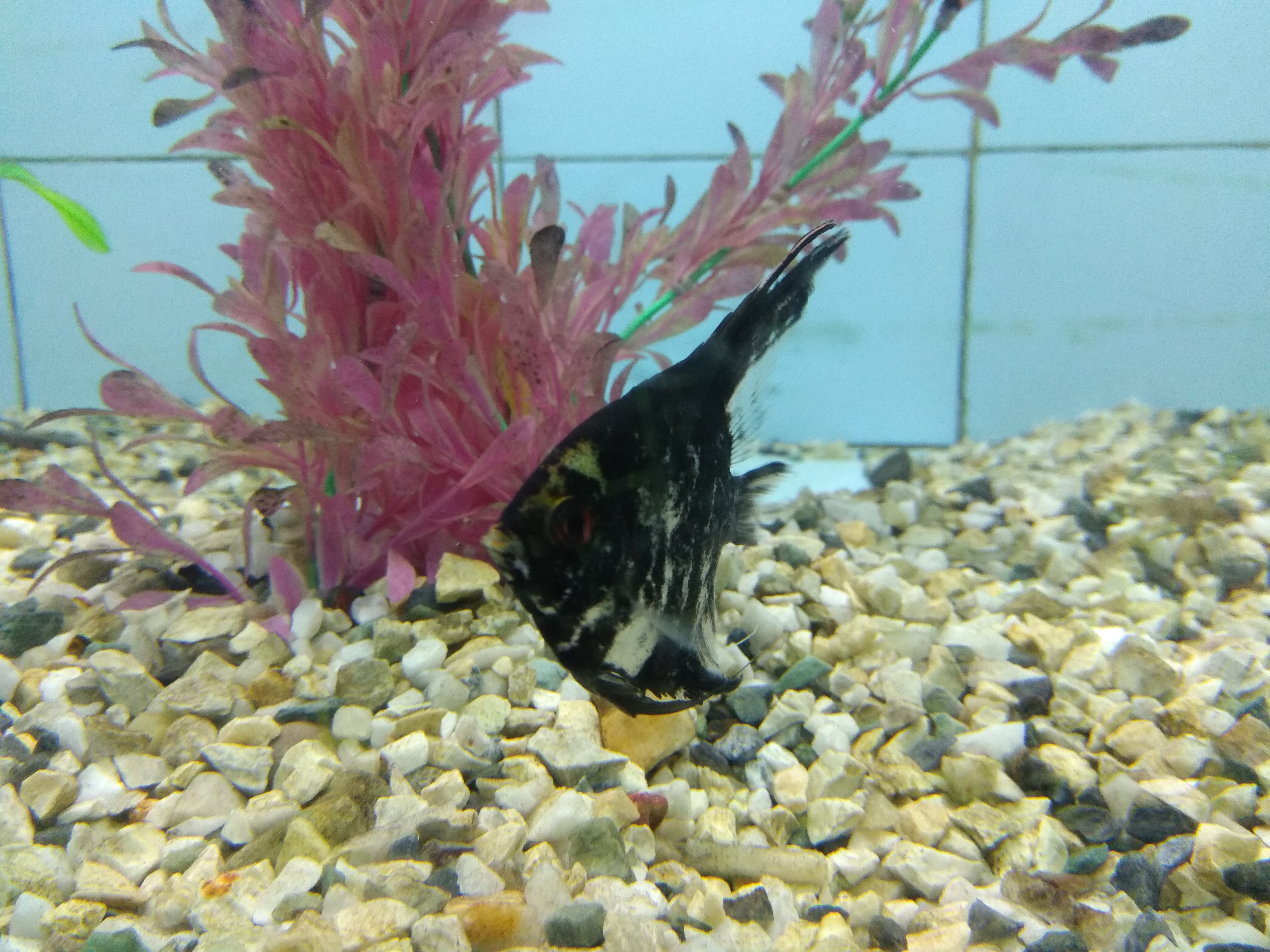 This fish looked like a freakin' tiger, a fierce tiger but much more adorable than that sadistic moron at the jungle. It's got its own black patches with a little bit of orange color over its head. Its bottom was white making it a multicolored fish which I fell in love with. It was alone in the tank which made it much more savage than the others ones. No other fish messes with it.