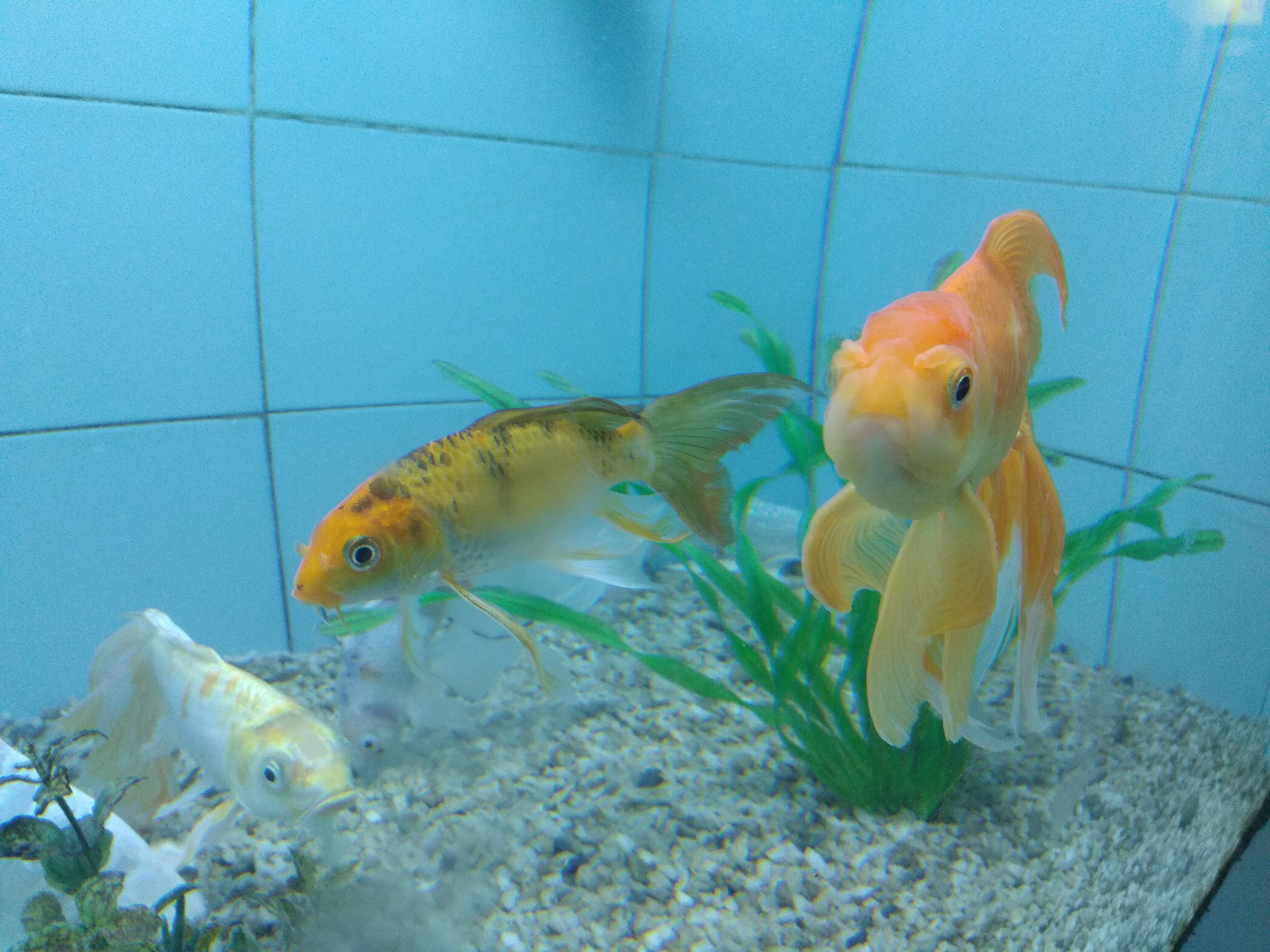 The other fish tank was of goldfish and other fishes. There were three of them in the tank. One was yellowish and the other one was white in color. They looked so adorable together. Most shiny was the gold fish, of whose picture is being seen in the thumbnail. Looked like it was the boss of 'em. I ain't joking. It outshone the other fishes that were present in that tank. Have a look