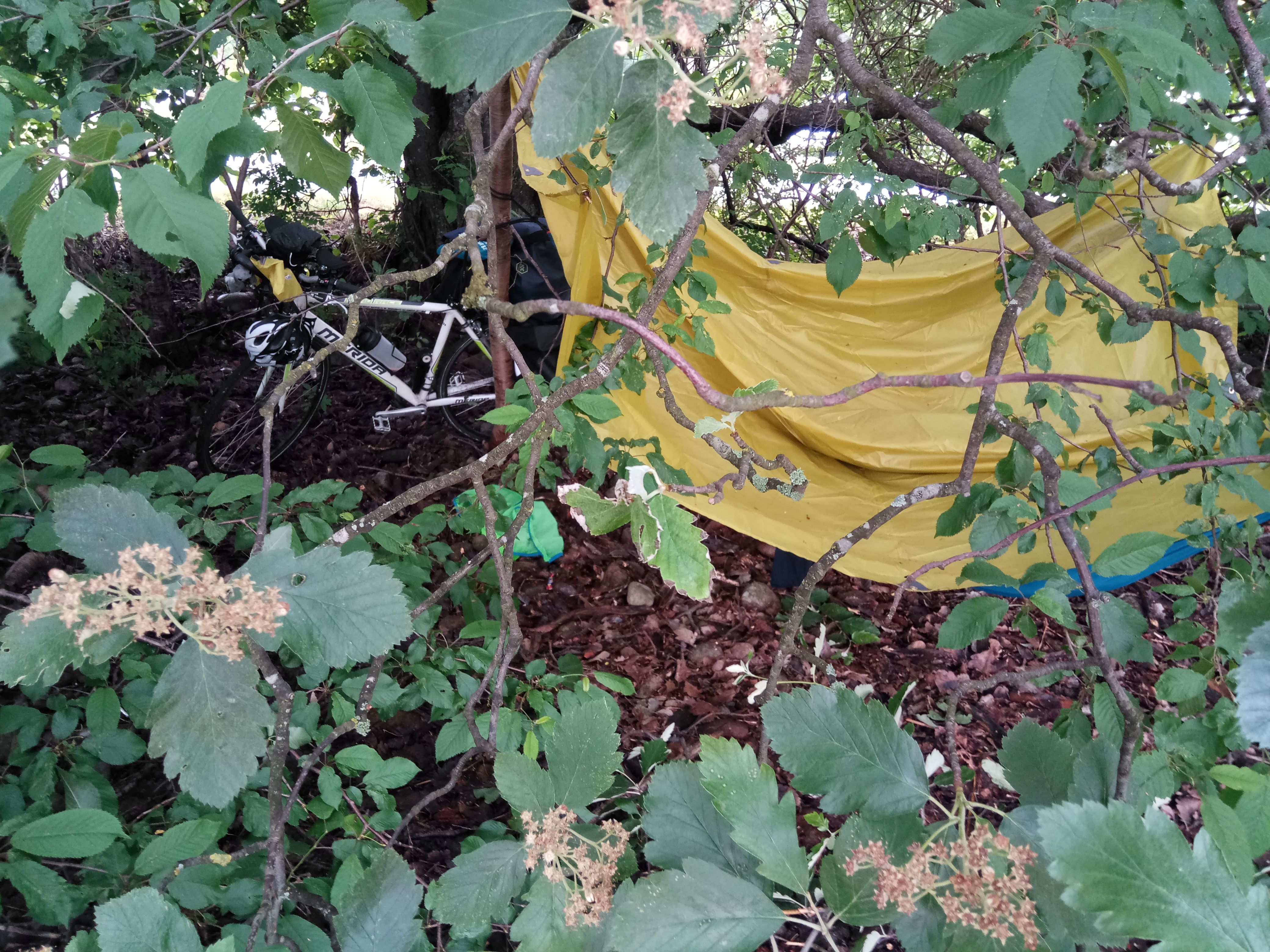 Closeby are camping shelters and a fireplace, because of more rain during the night I put up my hammock in the rain shelter and sleep comfortably and dry.