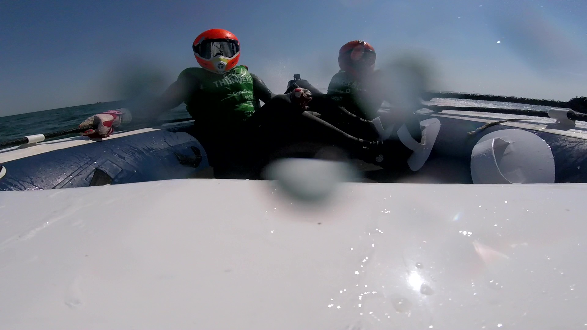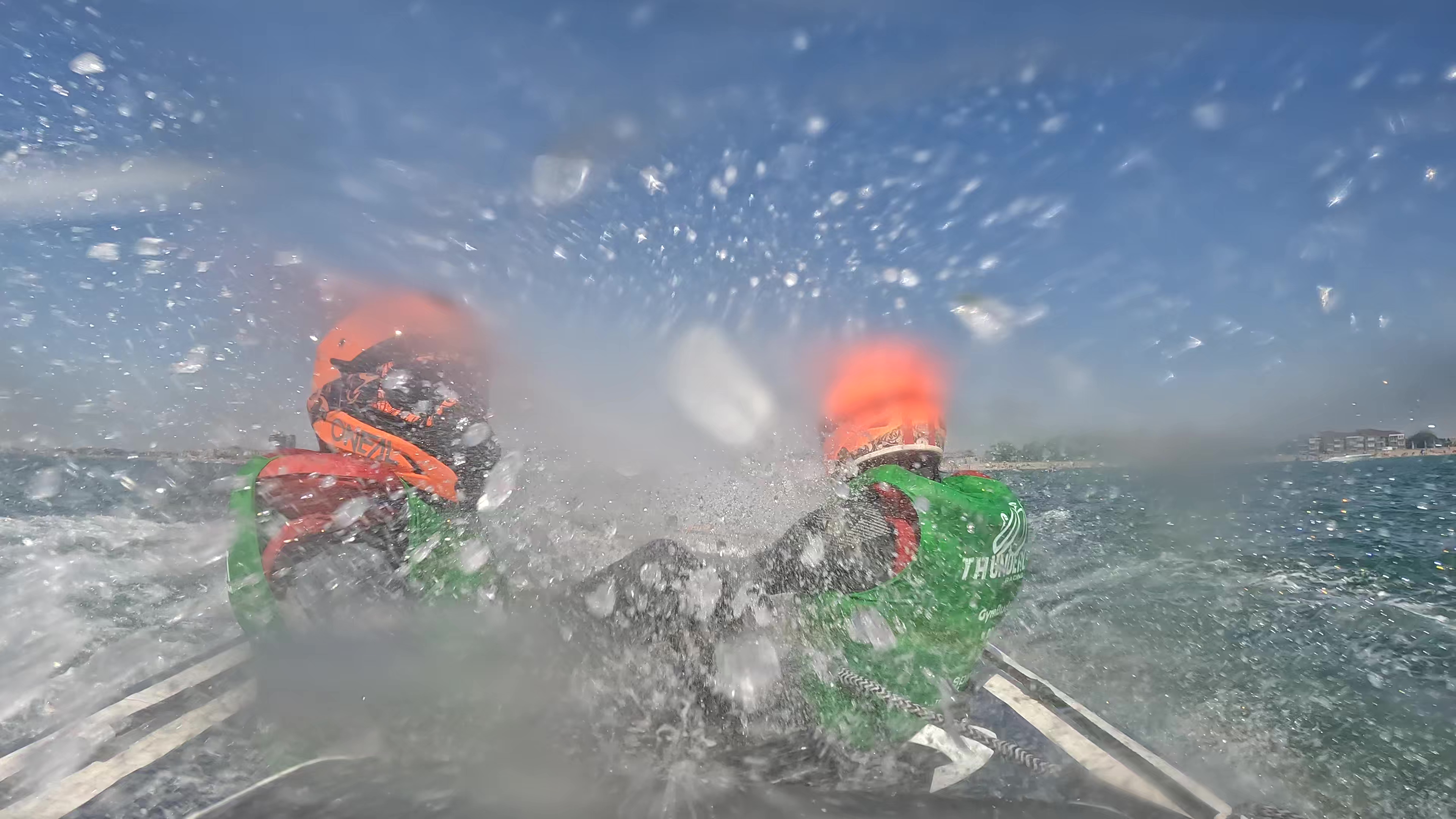 My co-driver has to get down and tuck in for the corners to keep the boat from flipping and also ensure we get a tight corner without losing speed.