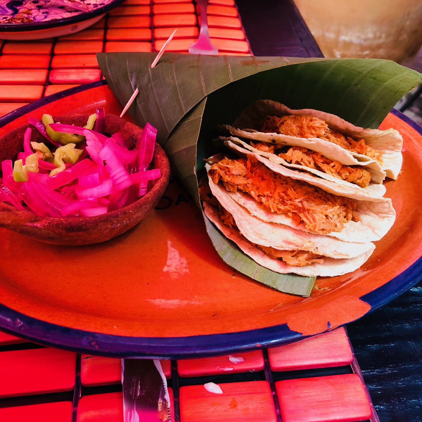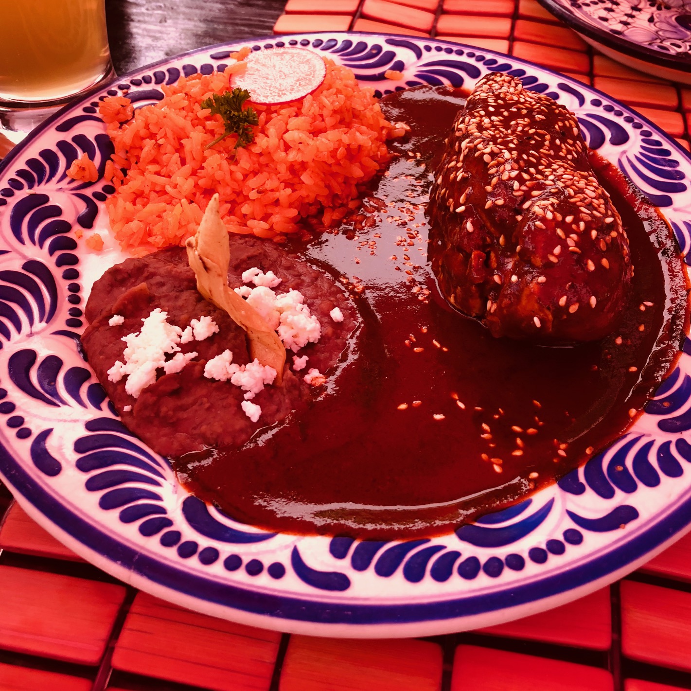 Once the restaurant was open, we headed back to grab a table. This ended up being one of the best meals that we had during the trip. We split a plate of mole poblano (a local specialty) and some tacos with cochinita (a traditional slow-roasted pork dish) and pickled onions. We also got some local beer and some espresso at the end of the meal!