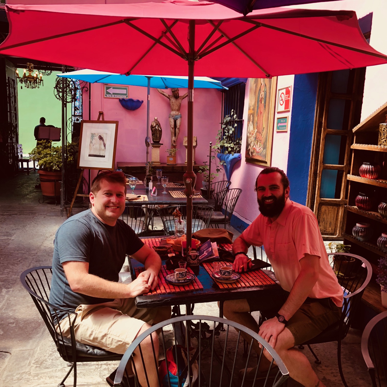 Without a set destination in mind, we headed to the spot we had chosen for lunch. It was a spot called Mesón Sacristía de la Compañía, and was actually where Jordan’s cousin had had their rehearsal dinner for their wedding. When we got there though, it was closed and didn’t open for about an hour, so we wandered around the town a little. We ended up getting a cup of coffee at the zócalo (city center) a few blocks away.