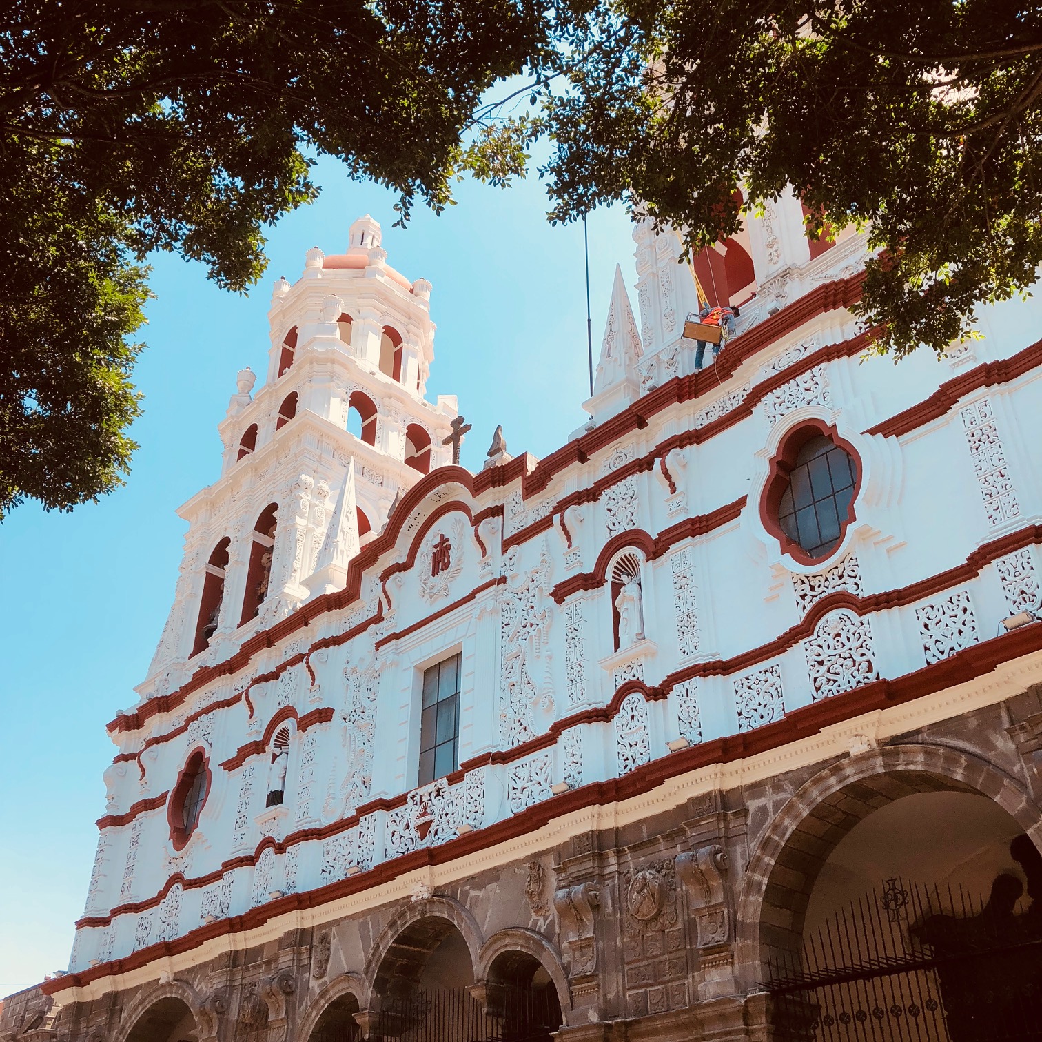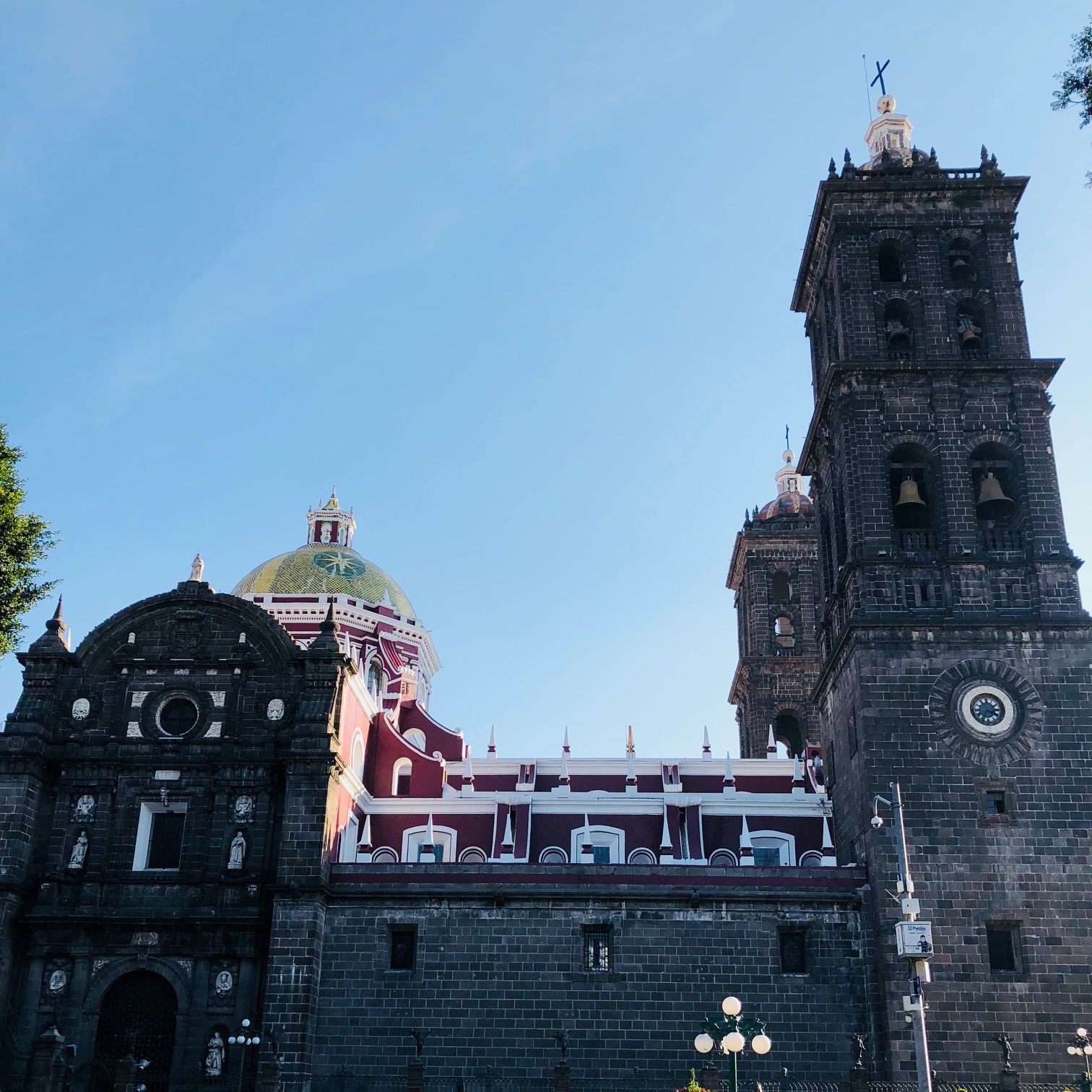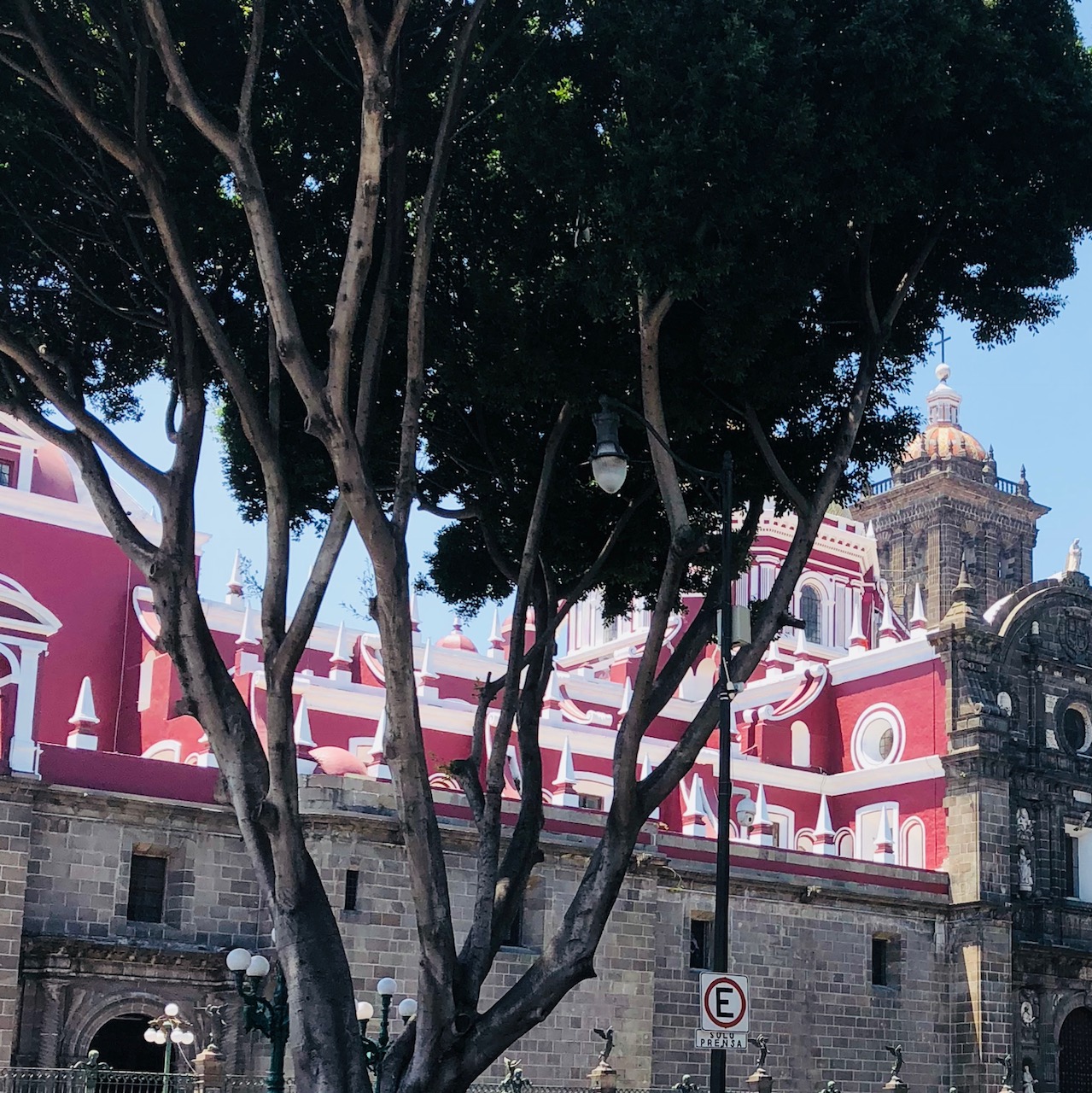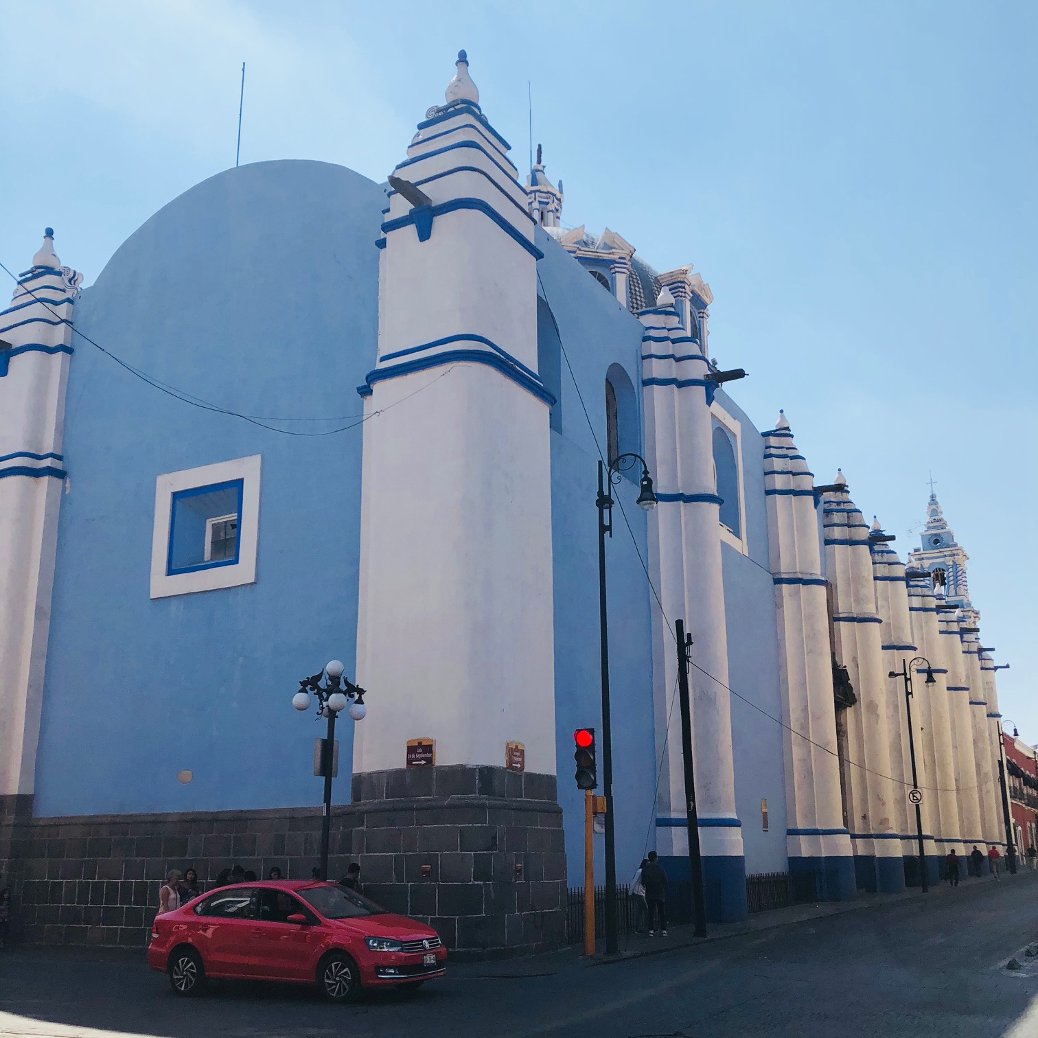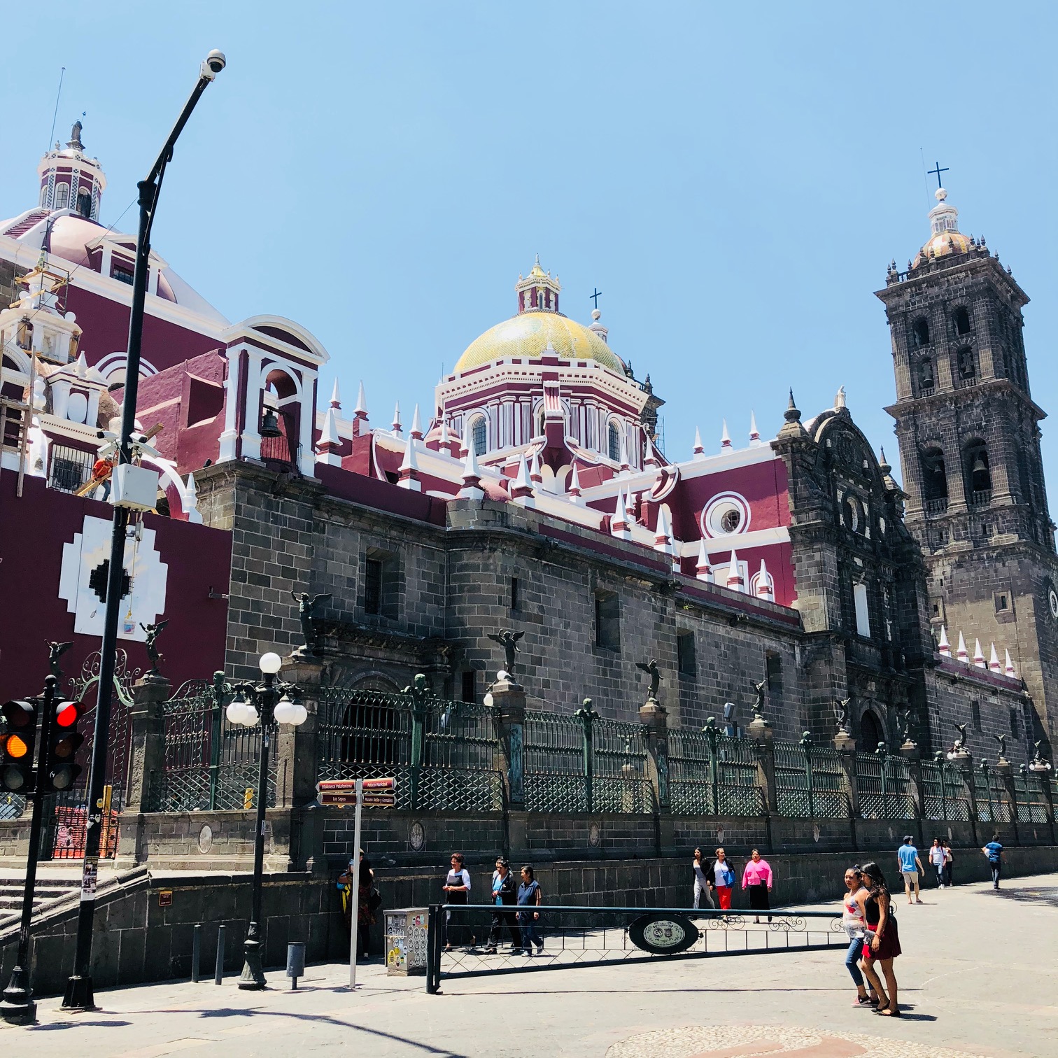 The buildings in Puebla were beautiful and we saw some on our short walk to the square. There was also an amazing cathedral in the square (kind of a theme in Mexico). This one was pretty gothic, but they were painting it purple and white and the transformation was in progress, which made for a pretty cool look.