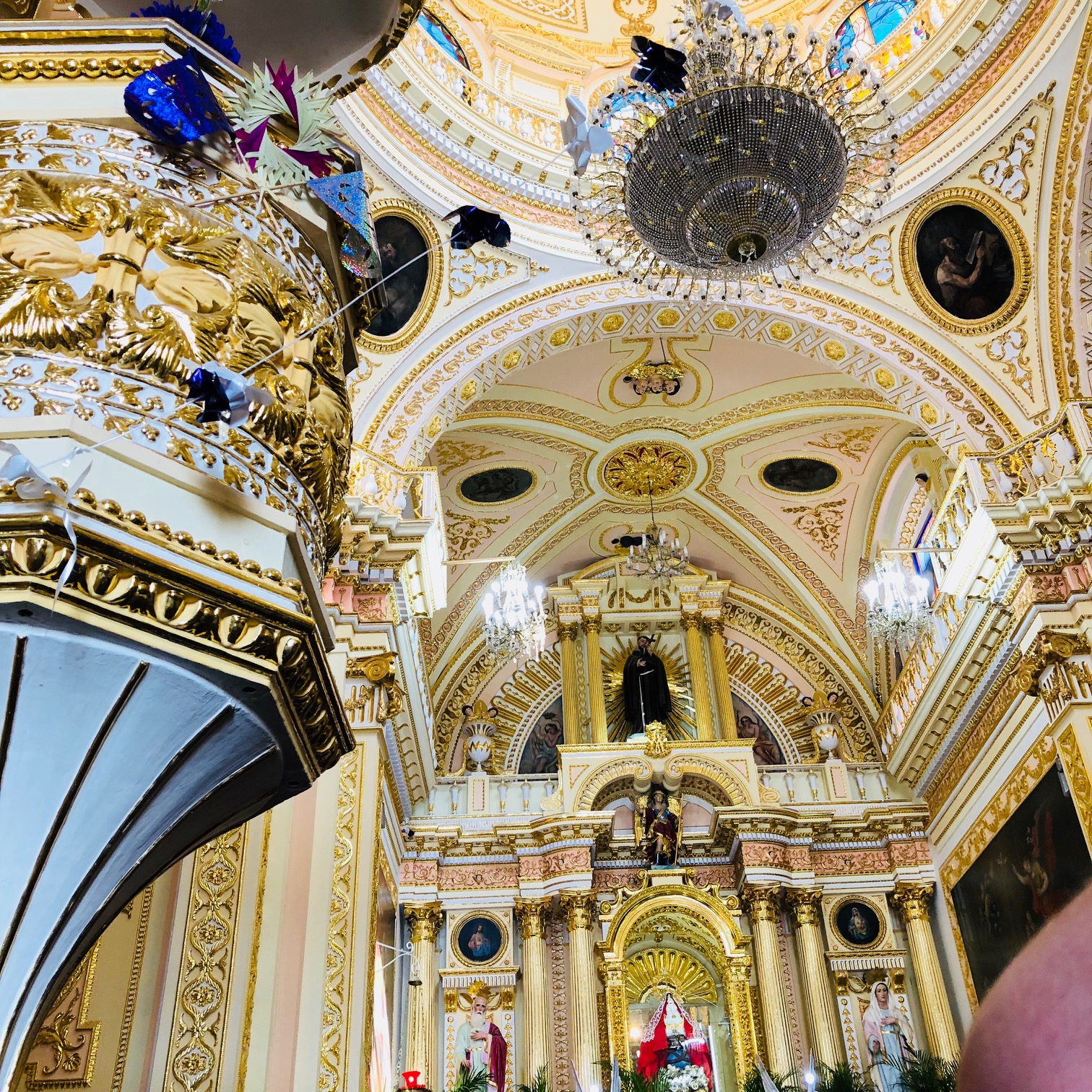 It was getting to be the early evening, so we grabbed an Uber back to Puebla to check out a little more of the city and get some food for dinner. When we got back, the city was filling up (everywhere we went were pretty dead until about the mid-afternoon). We checked out the inside of the cathedral on the square in Puebla. Then, there was a large market area near the square that we checked out. There was even an area of the market that was filled with candy stores, called Calle Dulce (Sweet Street, aptly named).