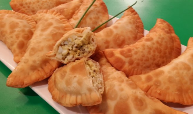 Las empanadas son discos de masa cruda rellenos de mariscos, carne, queso, verduras y cocinados fritos u horneados. Su nombre proviene de “empanar”, o sea cubrir con pan.