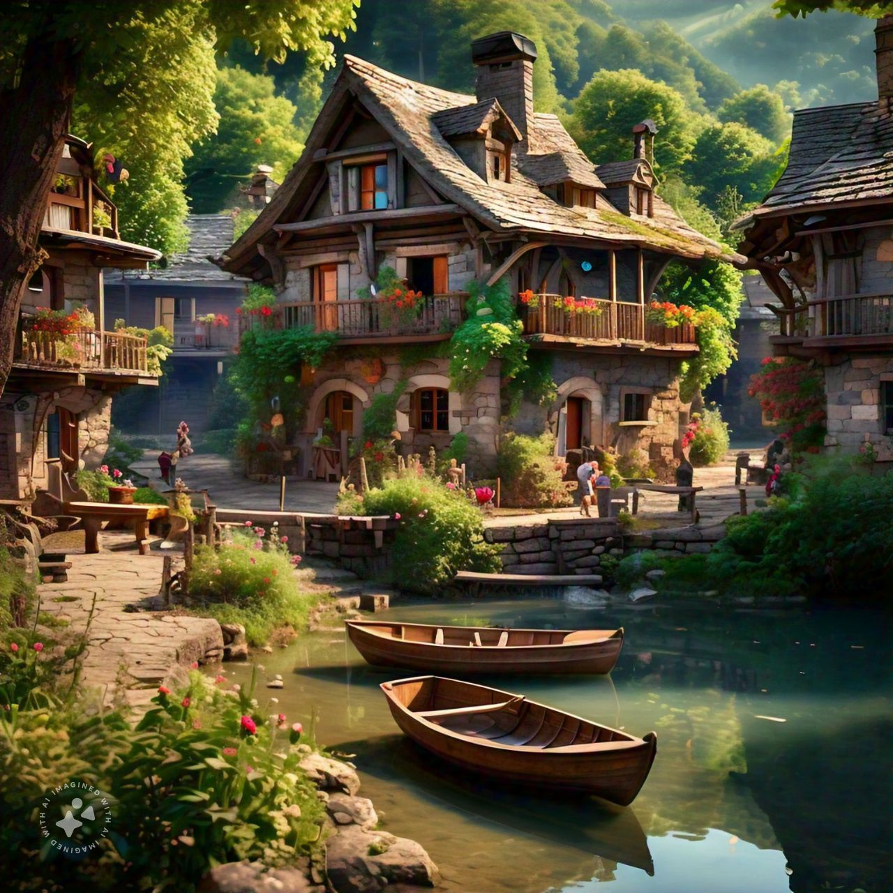 The village is also rich in natural beauty. A sparkling stream flows along the edge of Willowbrook, providing a peaceful spot for fishing, picnicking, or simply watching the gentle flow of water under the sunlight. Beyond the fields, trails lead up to a forested hillside where walkers can enjoy breathtaking views of the countryside.