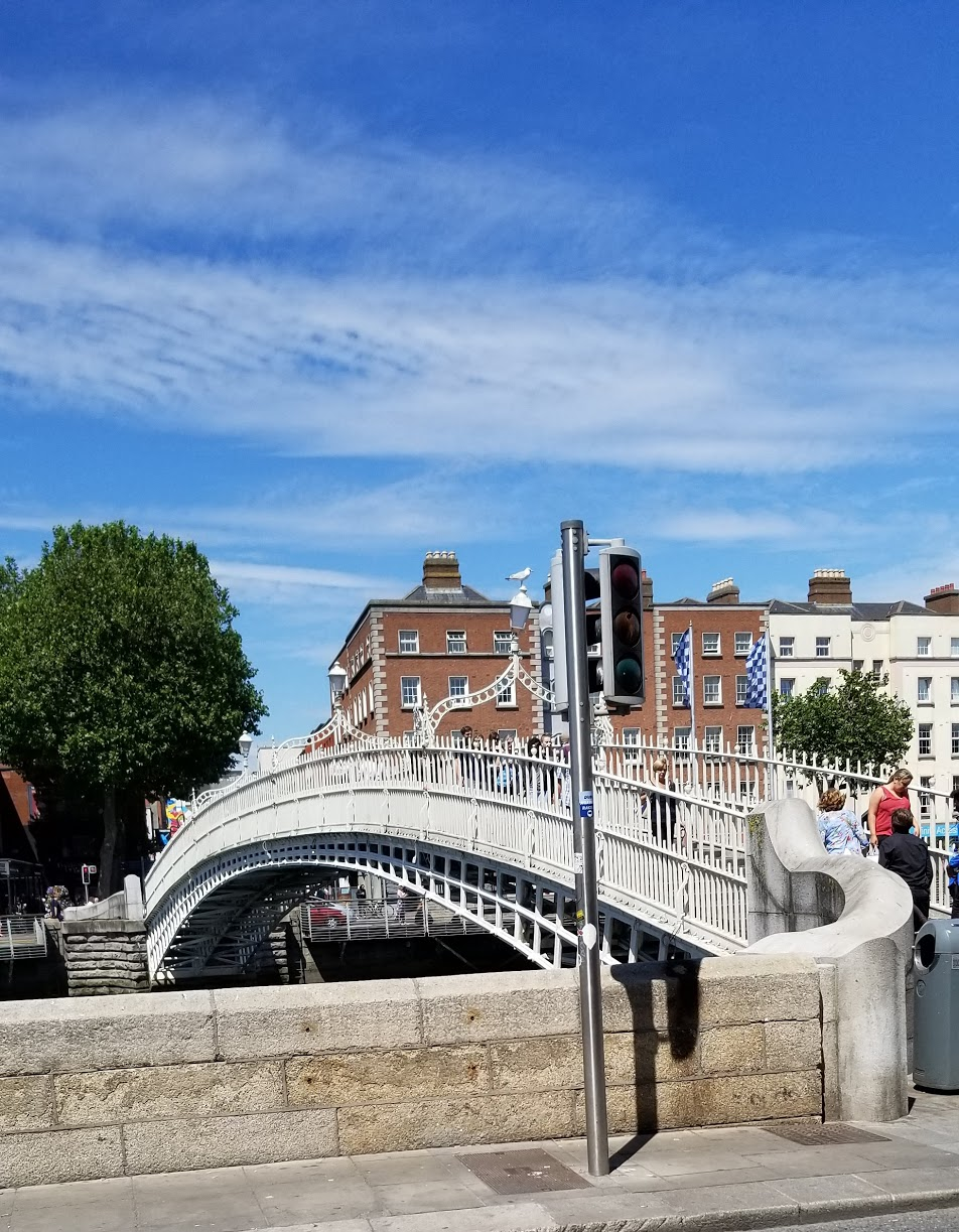 I still enjoyed a long day. I took a bus into center city, left my bag at the hostel, and went on foot to explore. I had barely made it across the bridge over the River Liffy when I heard someone sharing some fun facts about it and the Ha’penny bridge a little ways down. I had stumbled upon one of Dublin’s Free Walking Tours!