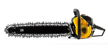 “Plan” is a literal metaphor of an old Arab proverb, "Time is like a sword, if you don't cut it, it will end up cutting you" and accents the blades of a chainsaw with Arabic calligraphy citing the famous saying.