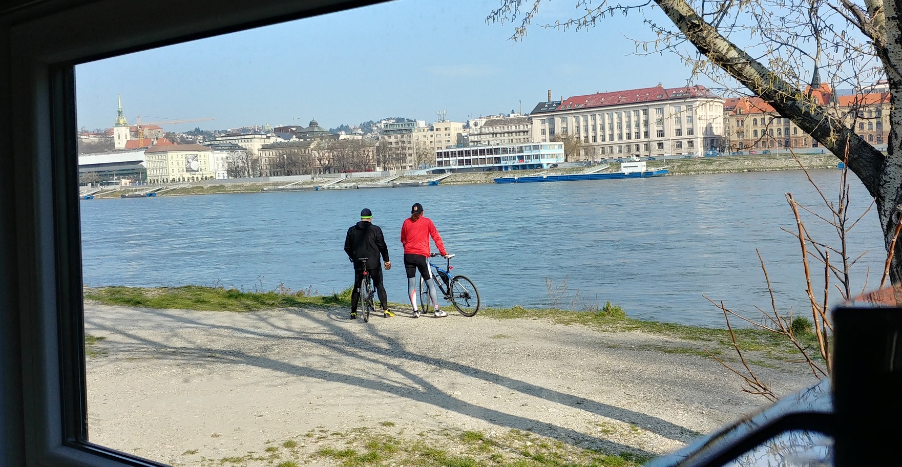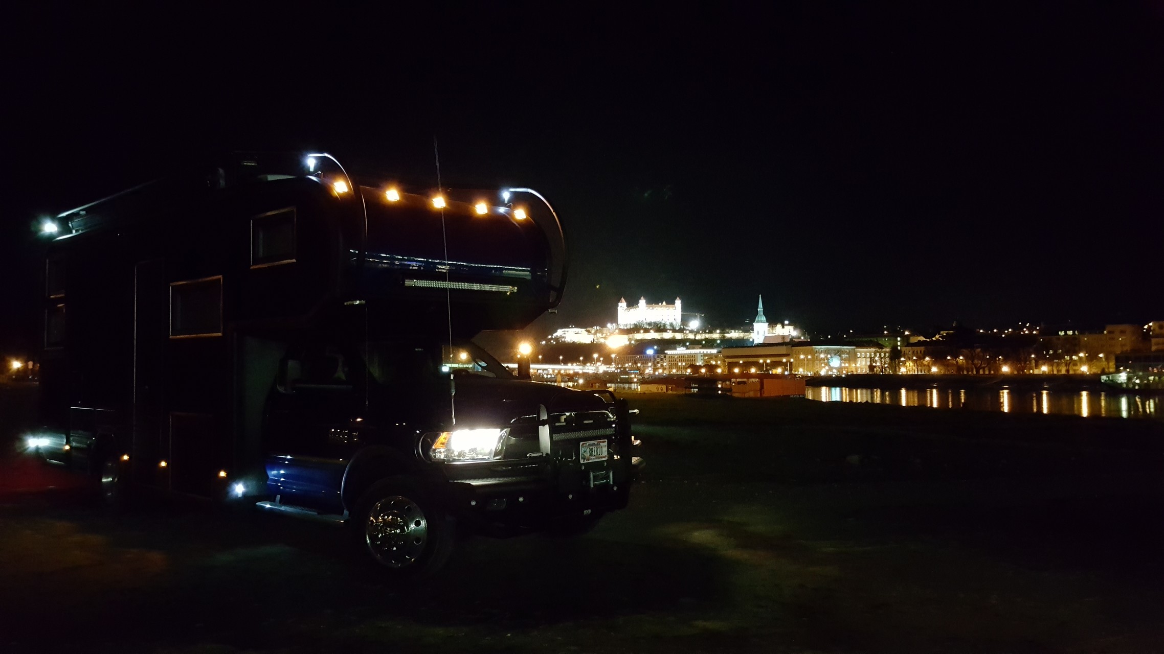 We found great parking spot even for vehicles of our size on the bank of the river overseeing Bratislava castle. It was nice breakfast in the morning with such view.