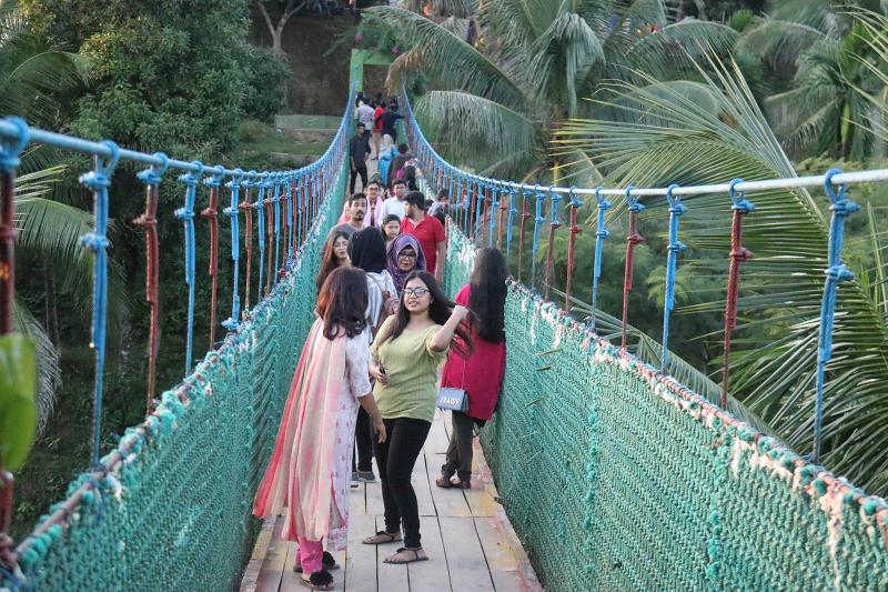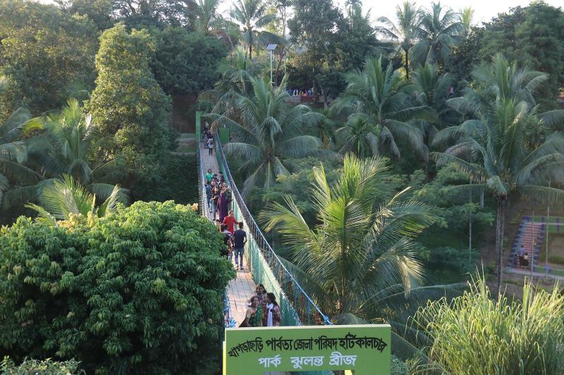 With the amazement of winter, crowds of tourists from different regions of the country are increasing in Khagrachari. Horticulture Park, Terangtaikalai Fountain, Tareng, Alutila Tourist Center, Alutila Navagadhatu Chaitra Buddhist Vihar, Mayabini Lake are delighted by the tourists. One of the tourist centers in the district, especially Zilla Parishad, has increased the number of tourists at the hanging bridge of Horticulture Park. The beauty of Khagrachari in the film.