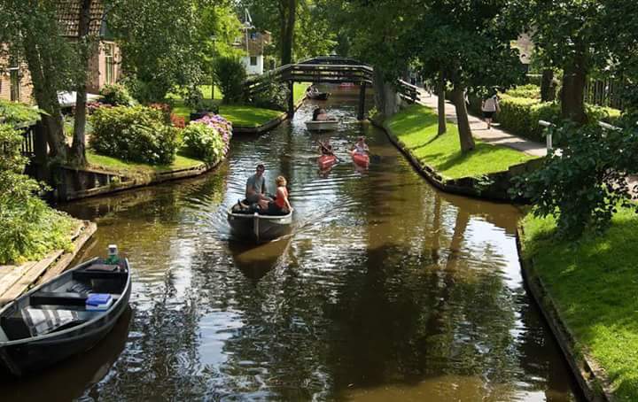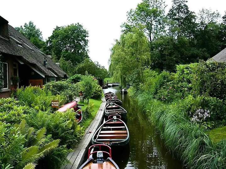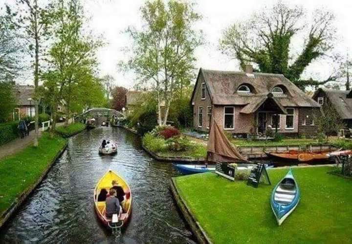 This beautiful view of a village without Roads which's name is Giethoorn it is in Netherlands.