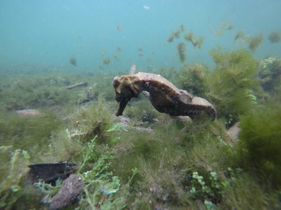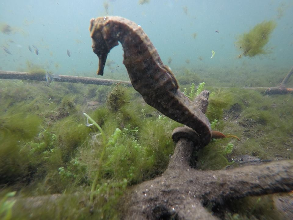 The cute little seahorse had its tail curled around a small branch on the bottom to help keep it in place, probably waiting for me.