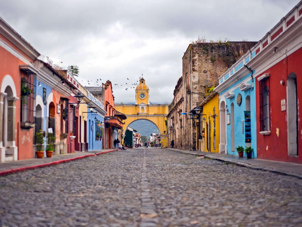 Your money does go far in Guatemala and the country is not touristy at all. Once you are in the country you can visit the old colonial town of Antigua(like on the picture) and the old city of Tikal which is UNESCO-listed.
