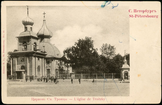 Postcard of the pre-revolutionary Petrovsky Trinity Cathedral.