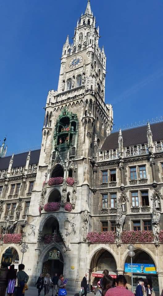 Marienplatz is located in the center of the city, it is a small square, surrounded by old buildings, many of them, with shops, and there is also the town hall building, where besides being a very nice building, it has the peculiarity of having a clock, in which every hour the bells play and at certain times of the day, some dolls and horses dance, a kind of giant coo coo watch. now for the third time in Munich and what is the weather beautiful, combined with a fair, a nice day in the beautiful city. go especially to the English garden, the largest city garden in Europe, it is wonderful to stay. You can also easily get there by metro, and then enjoy the beautiful buildings and culture.