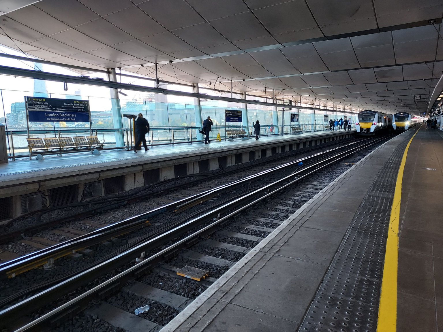 Both sides of the platform have full width windows looking out to the River Thames, and here you can see the Blackfriars Bridge outside. I believe this is the only covered bridge across the River Thames, hence may feel a little squashed inside as the ceiling height isn't in proportion to the width and depth of the platform. I mean obviously, you can't build a skyscraper across the Thames as it would look so out of place and obstruct the view for the rest of the bridges.