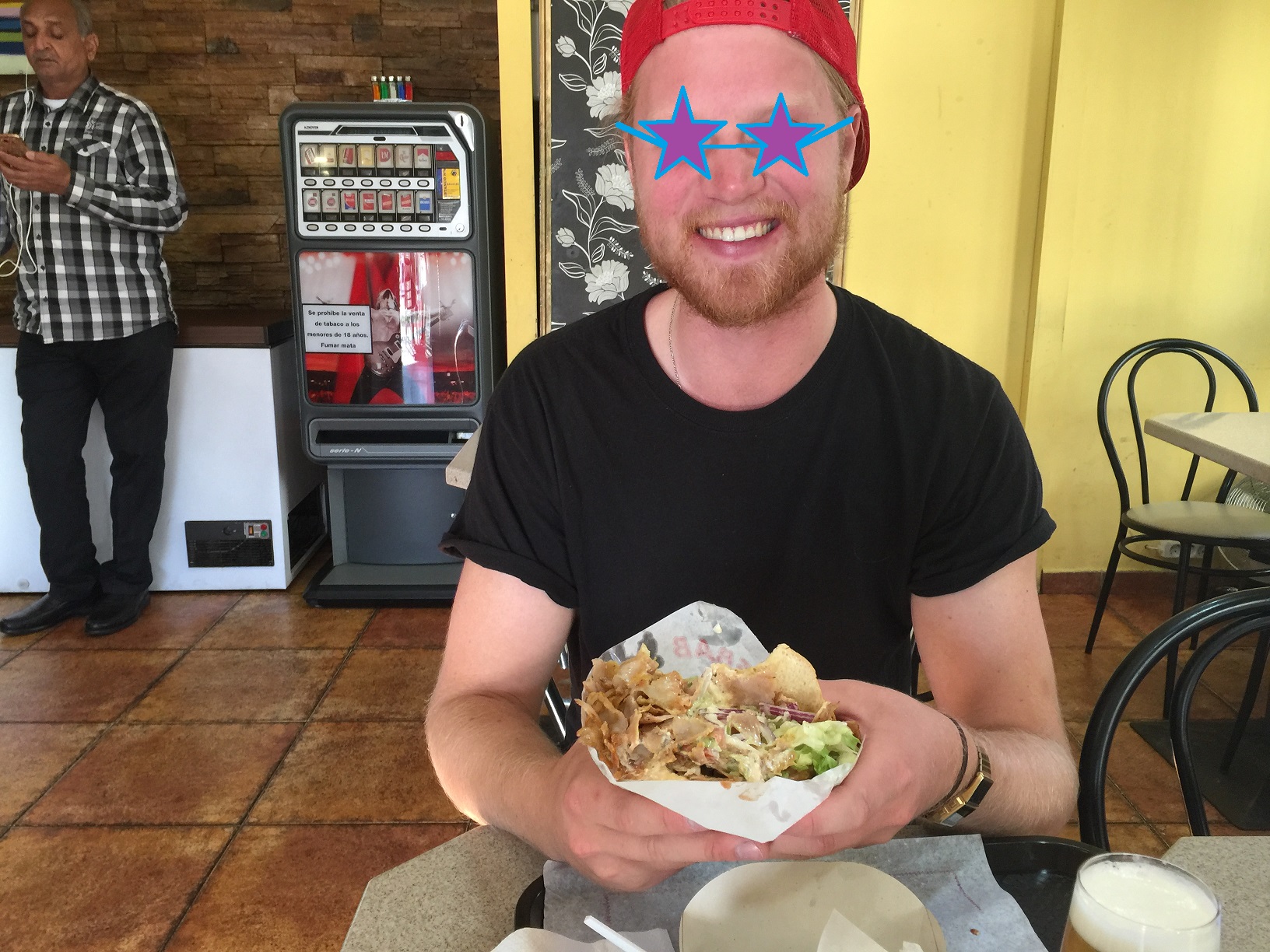 One of my friends was there already. He was eating a Donar Kebab.