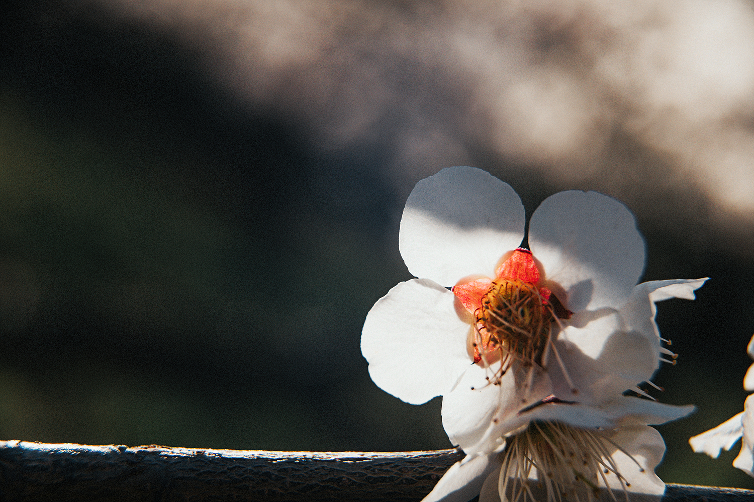 하얀 꽃잎과 붉은 수실을 볼수있는 매화꽃입니다.