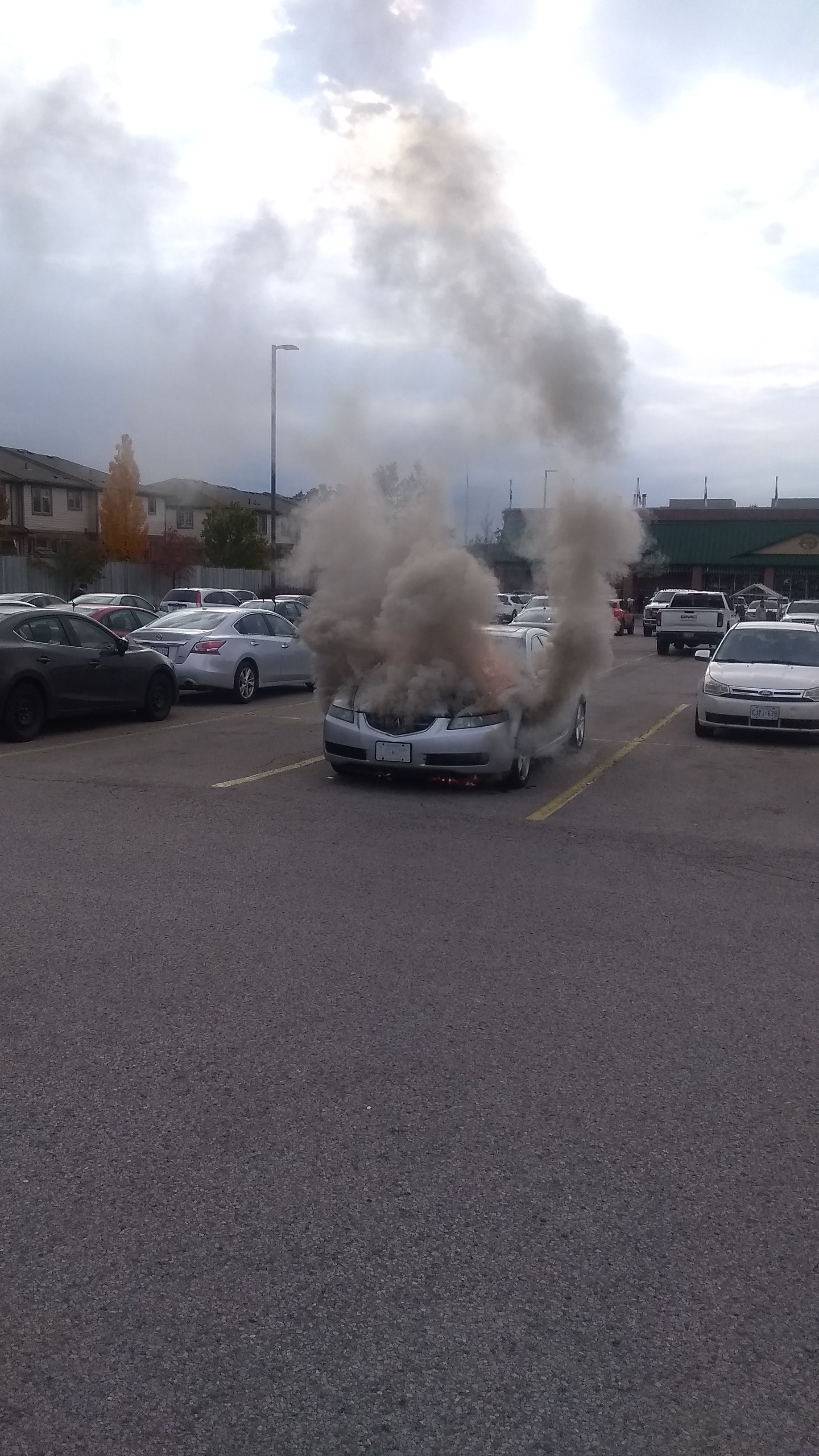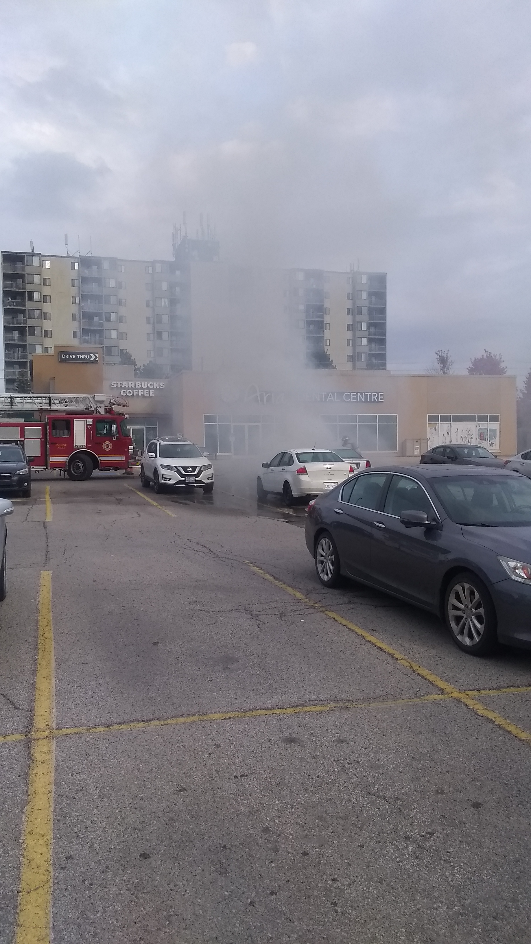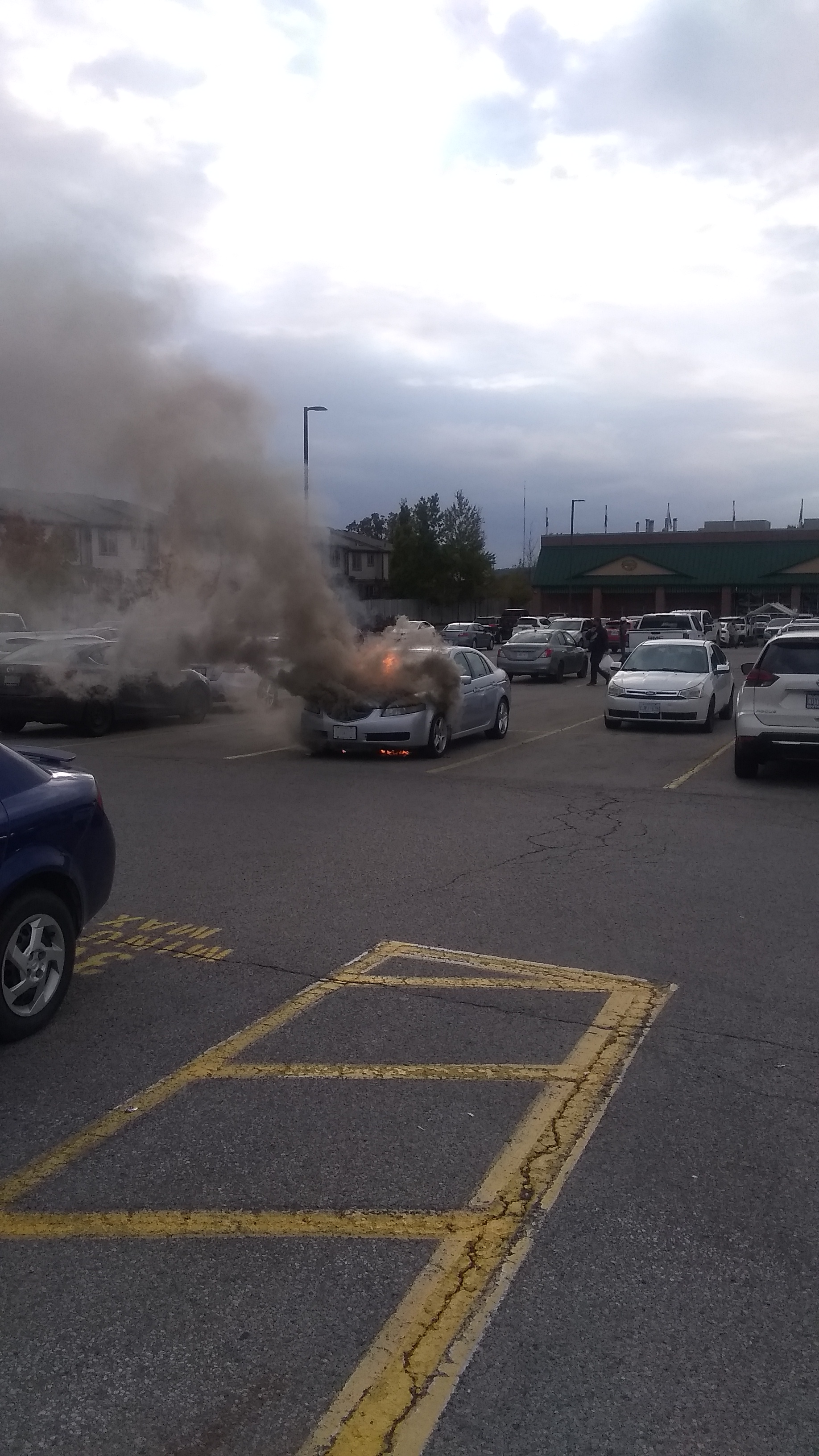 Took my wife for a drive 🚗🚗🚗 to London today, stopped at a coffee shop to use the washroom and to grab a coffee ☕☕☕, left my wife in the car. When I was getting my coffee I looked out the window and all I saw was smoke, and I was like wtf that better not be my car, I ran outside and luckily for me it was the car parked behind me