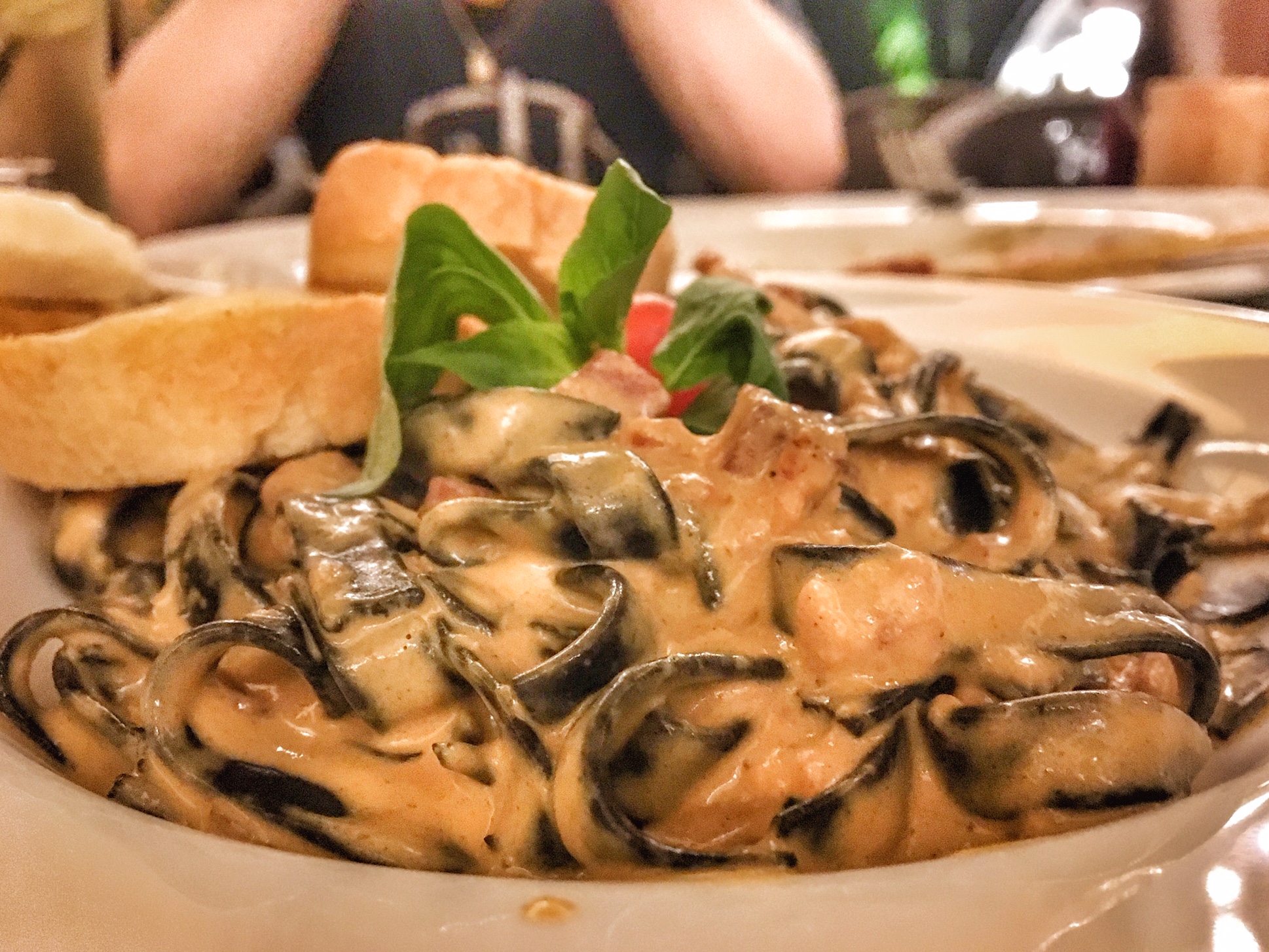When my main course came, I wasn't disappointed that ordered the creamy tomato linguine with chorizo. I completely loved it and am still thinking of the creamy tomato taste as I type this. The medium sized chunks of chorizo were the ideal addition to the perfected creamy tomato recipe of the bistro's 5-star chef. We shared a memorable order of Wagyu beef sushi that was slightly overcooked but the taste was amazing. We ended dinner early and retired for the night with filled appetites and full bellies.