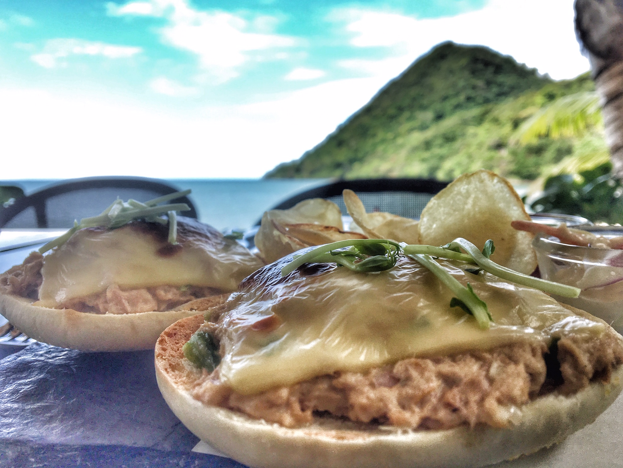 The views are breathtaking, the food looks amazing. Cheers! A tropical paradise.