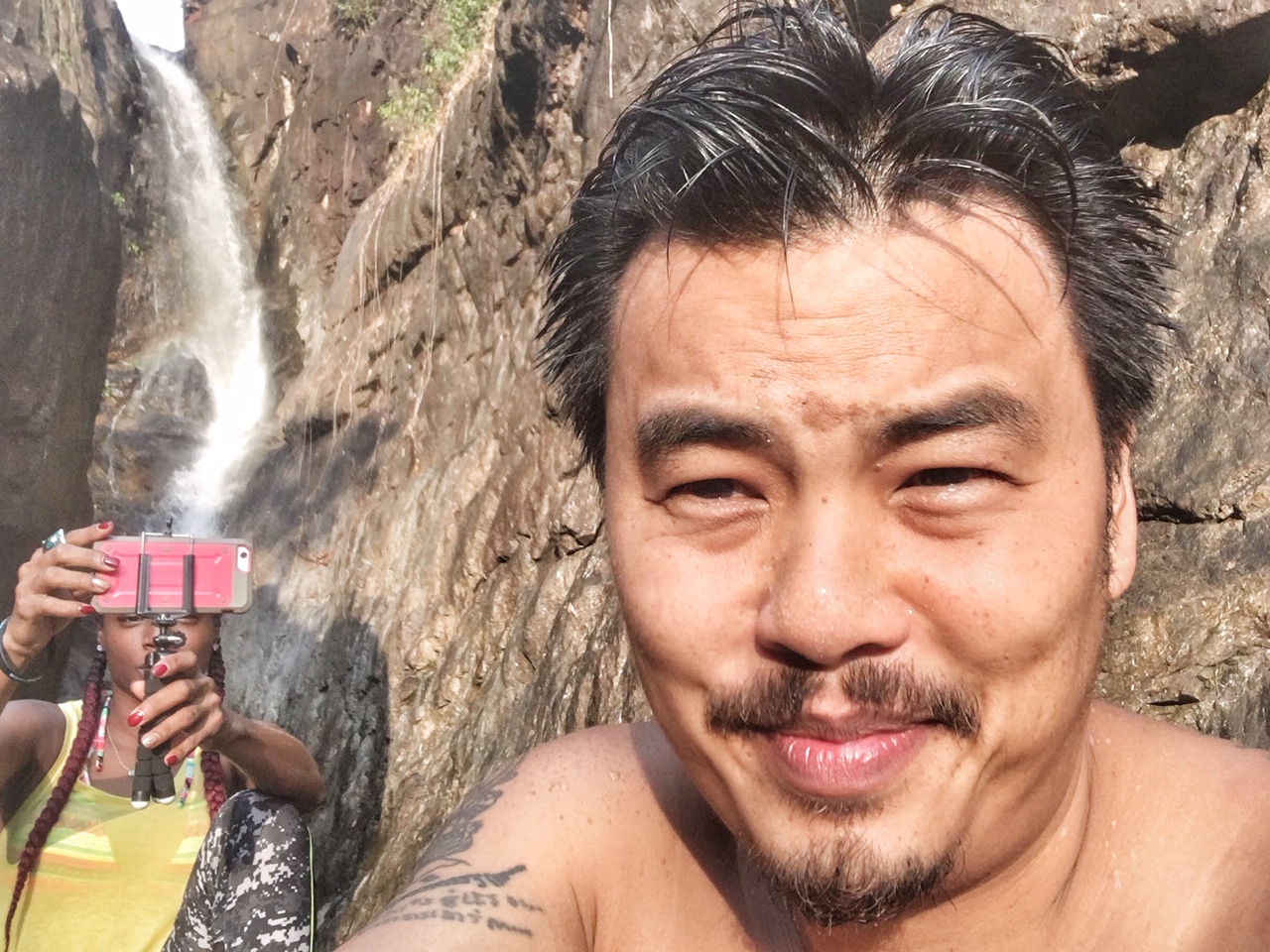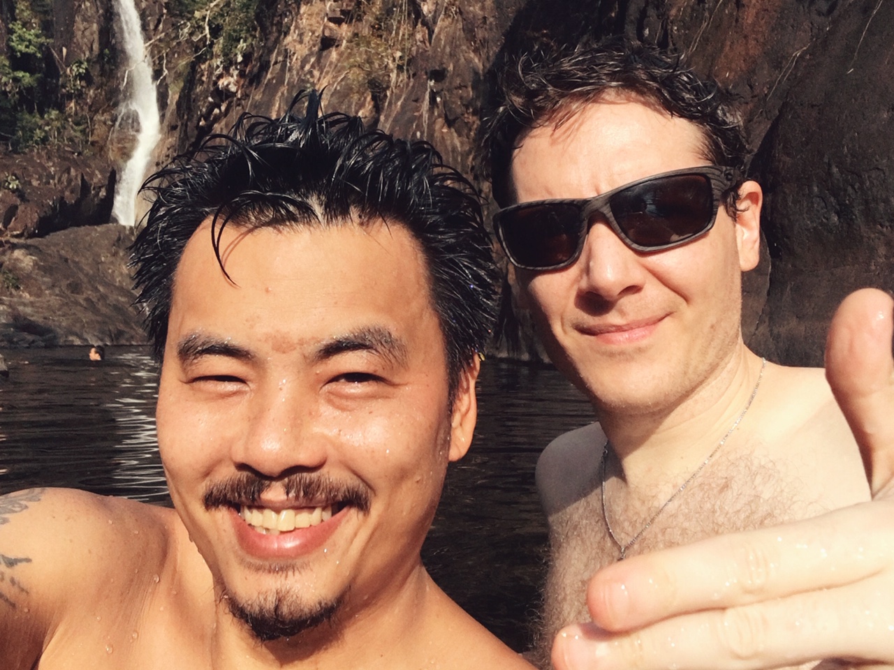 We spent the afternoon watching all the families and couples visiting the waterfalls come and go while we got the dead skin eaten off of our bodies and feet from the fish. I dove a few more times off my favorite boulder before we decided to leave to find a bite to eat for lunch.