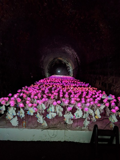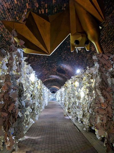 At the end of the tunnel, there is a card that holds people's wishes.