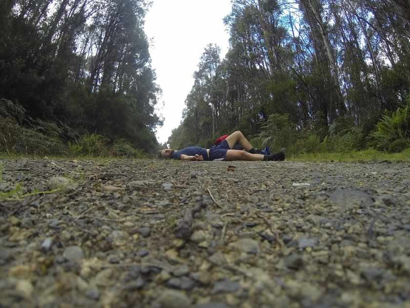 Eventually made it to a road with 300 ml water and 1% battery also used for GPS. I kissed the road and ate the other half of my cherry ripe.