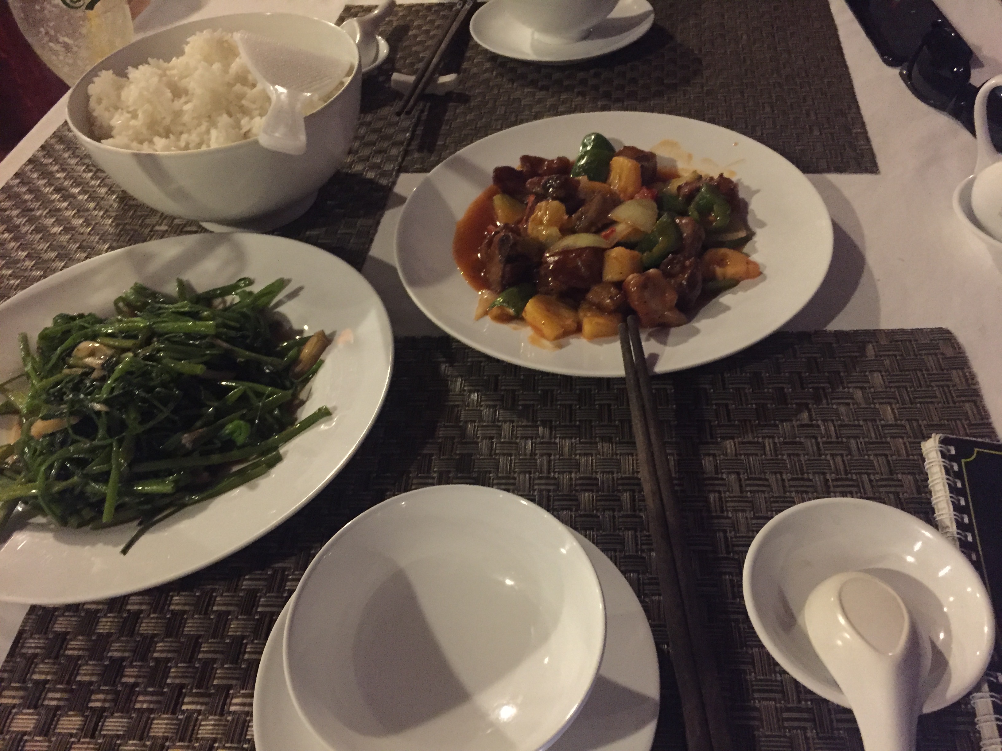 Close by, we find this huge restaurant/hotel kinda place where we decide to get some food. The waitress was actually speaking almost fluently English and asks us where would like to sit. As the place is completely empty we pick a good spot near the balcony.