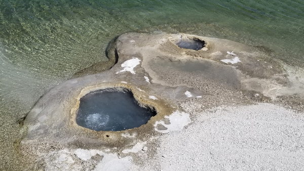 These two hot tub looking geyser cauldron things are right next to Yellowstone Lake. They make the lake look like it's from another planet.