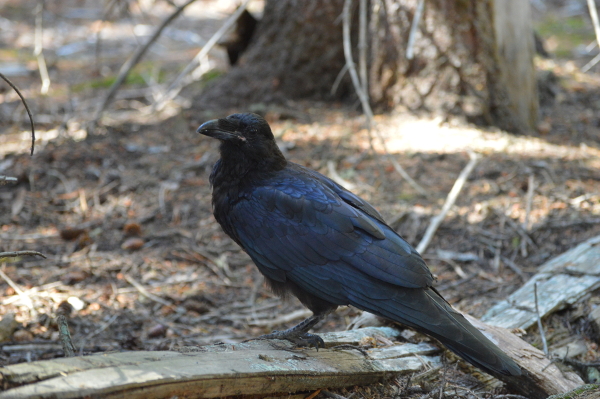 This is a raven or a crow. I don't know how to tell the difference. They let you get super close to them without flying away.