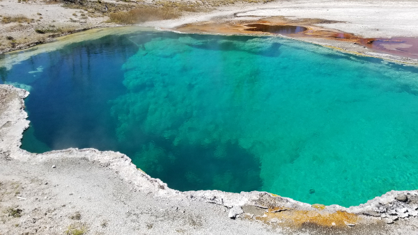 Here is a turquoise pool of hot Yellowstone water. While I was there I seen a dragonfly commit suicide by flying into the hot water and boiling to death.