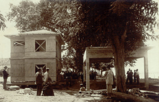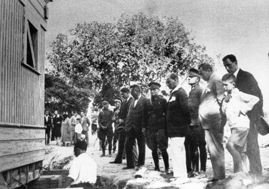 Now the building has been moved over the rails and removed from the tree. On a beautiful and warm summer evening, together with Ulu Önder Atatürk, his brother Makbule Atadan, Governor Muhittin Bey, Deputy Director of Science Office Ziya Bey and reporter Yunus Nadi under the supervision of reporter Yunus Nadi. Moved around.