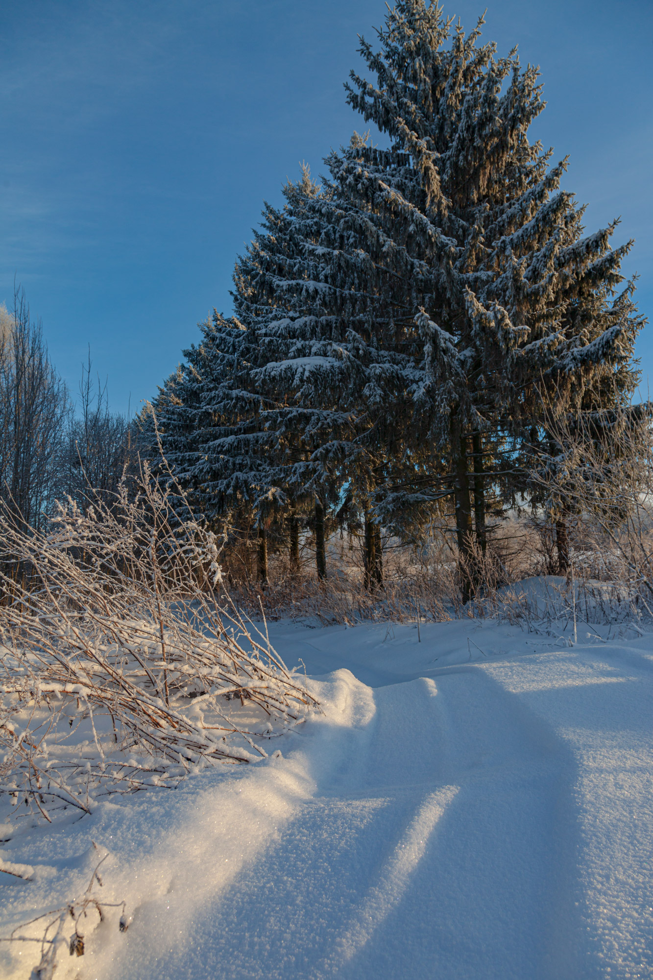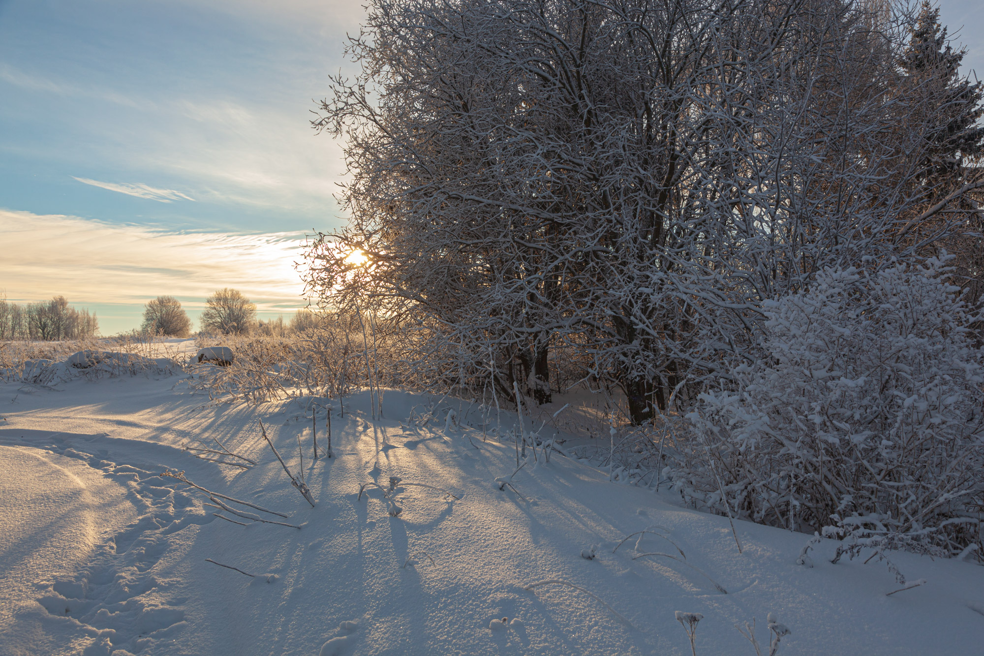In winter, it is very beautiful to see snow on tree branches, snow everywhere and the low winter sun, which makes the world so beautiful.