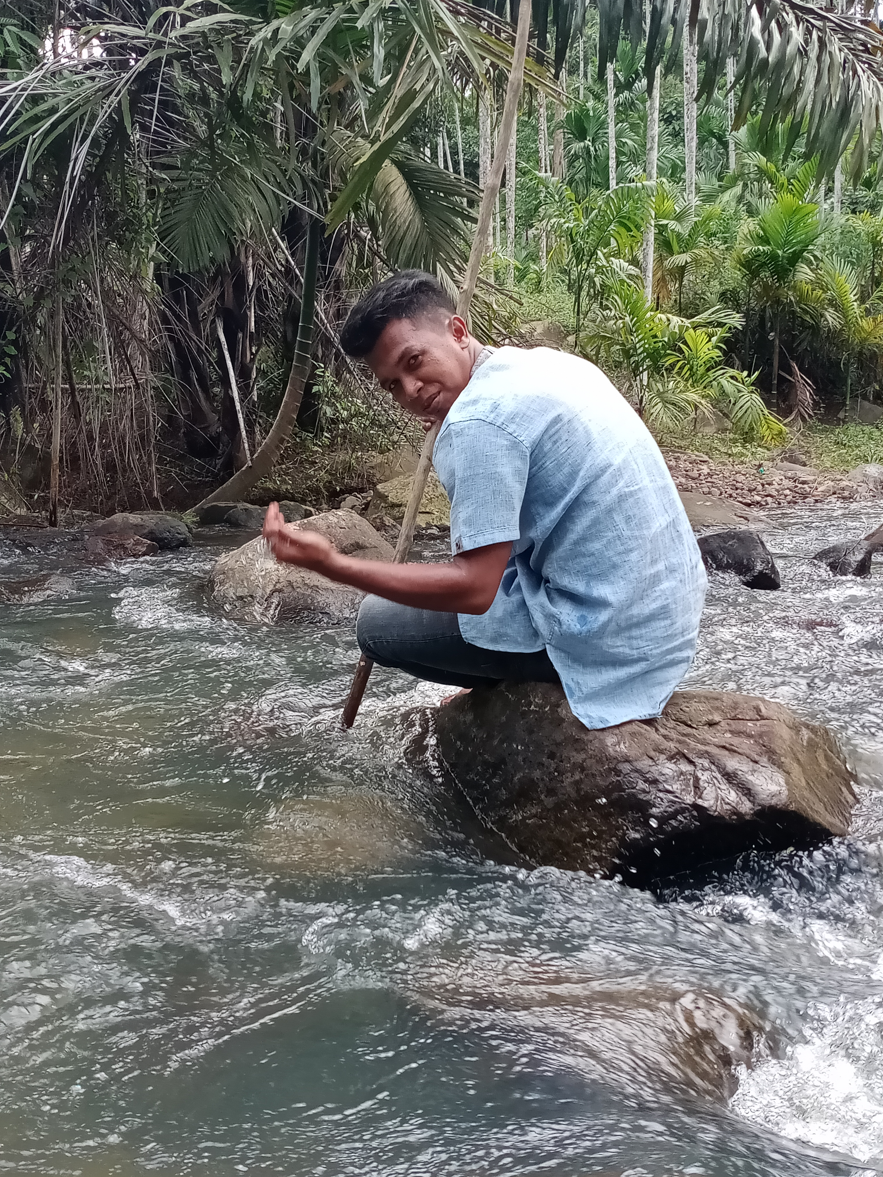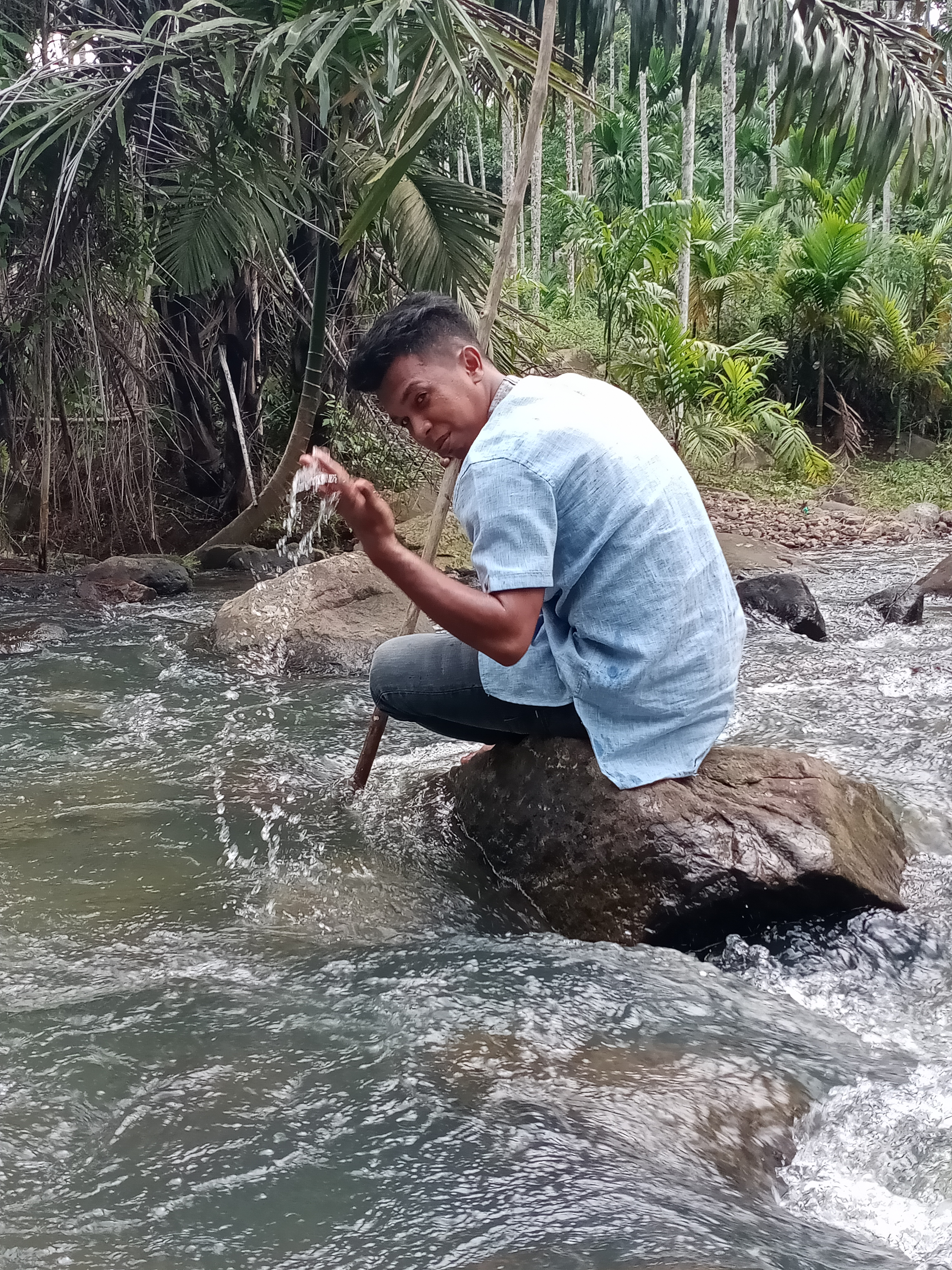 Tampak suami begitu menikmati merdunya suara gemuruh sungai yang masih asri kejernihannya