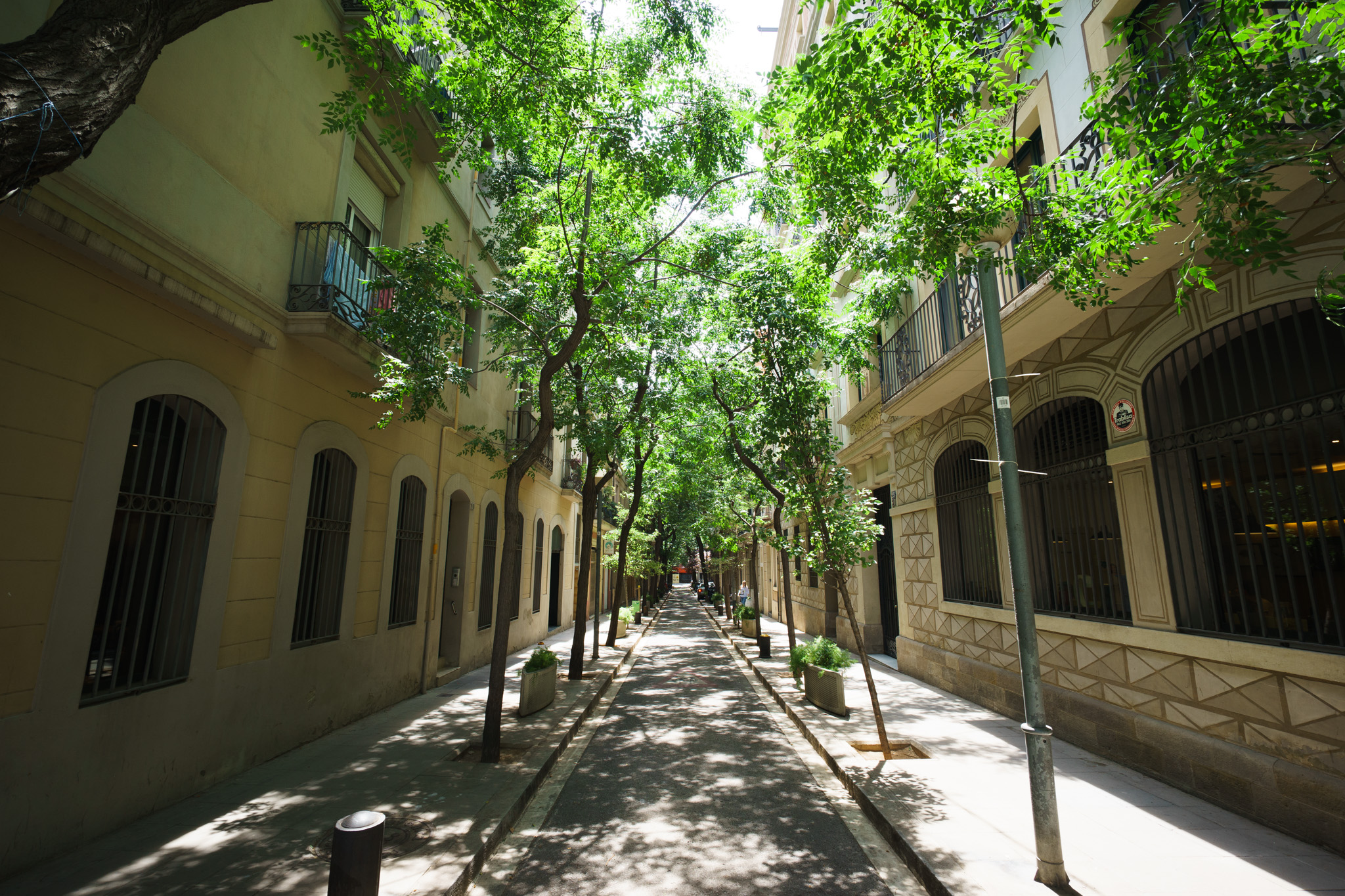 A small street full with trees, close to Sagrada Familia - Voigtlaender 15mm @ f/8
