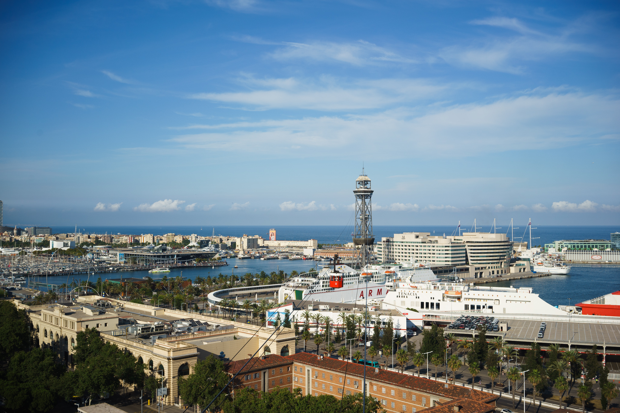 Our next stop for the day was Montujic, a 173m hill just above the harbor of Barcelona. The plan was to take the cable car from there down to the seafront. There is a cliff railway going up to the hill which was included in the "Hola BCN" public transport ticket that we got and from there you can take a cable car to Montujic castle, or walk around 10 meters to the "Teleferic de Montjuic" cable car down to the city. The ride takes you across the harbor area and takes only a few minutes but it is definitely worth it. You can also take the cable car up to Montujic of course.