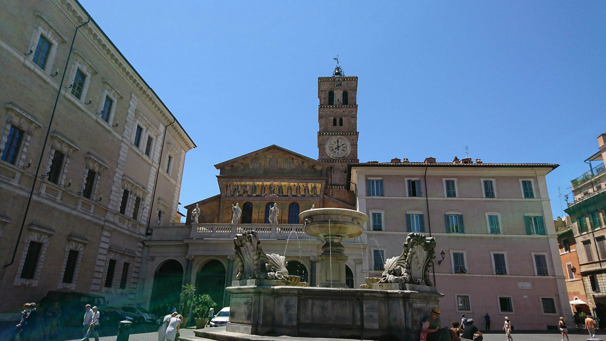 Walk few meters from the fountain and you will find the Basilica di Santa Maria, an interesting church with palm trees on it.