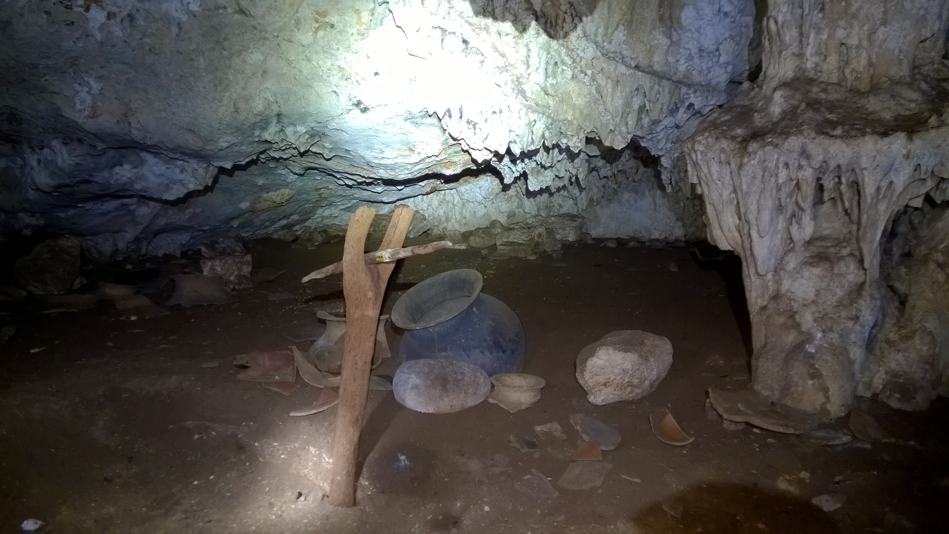 This hidden gem was discovered by Antonio around 10 years ago. He went hunting as usual with 3 other people, but this time they went much deeper into the jungle and accidently found themselves directly in the front of the entrance to this cave. Inside they found pieces of earthenware vessels and whole ones as well as other offerings, that Maya people brought to their gods. Nothing was removed, exactly like ancient people left everything hundreds years ago. When time passed by, during archaeological expeditions some of the artefacts were stolen and never came back.