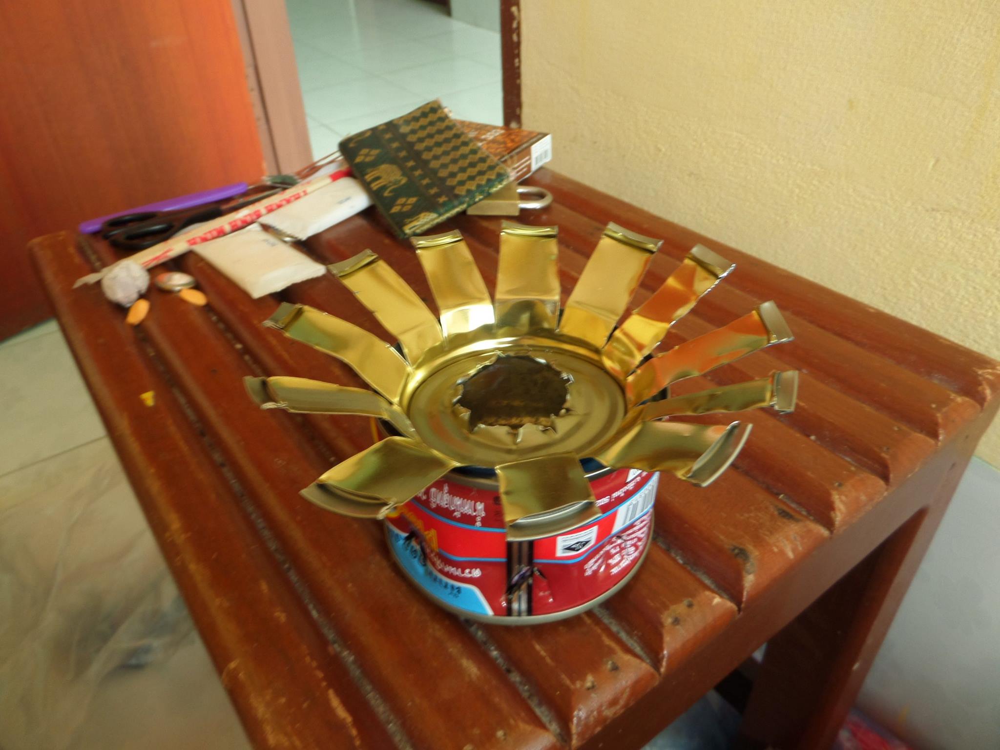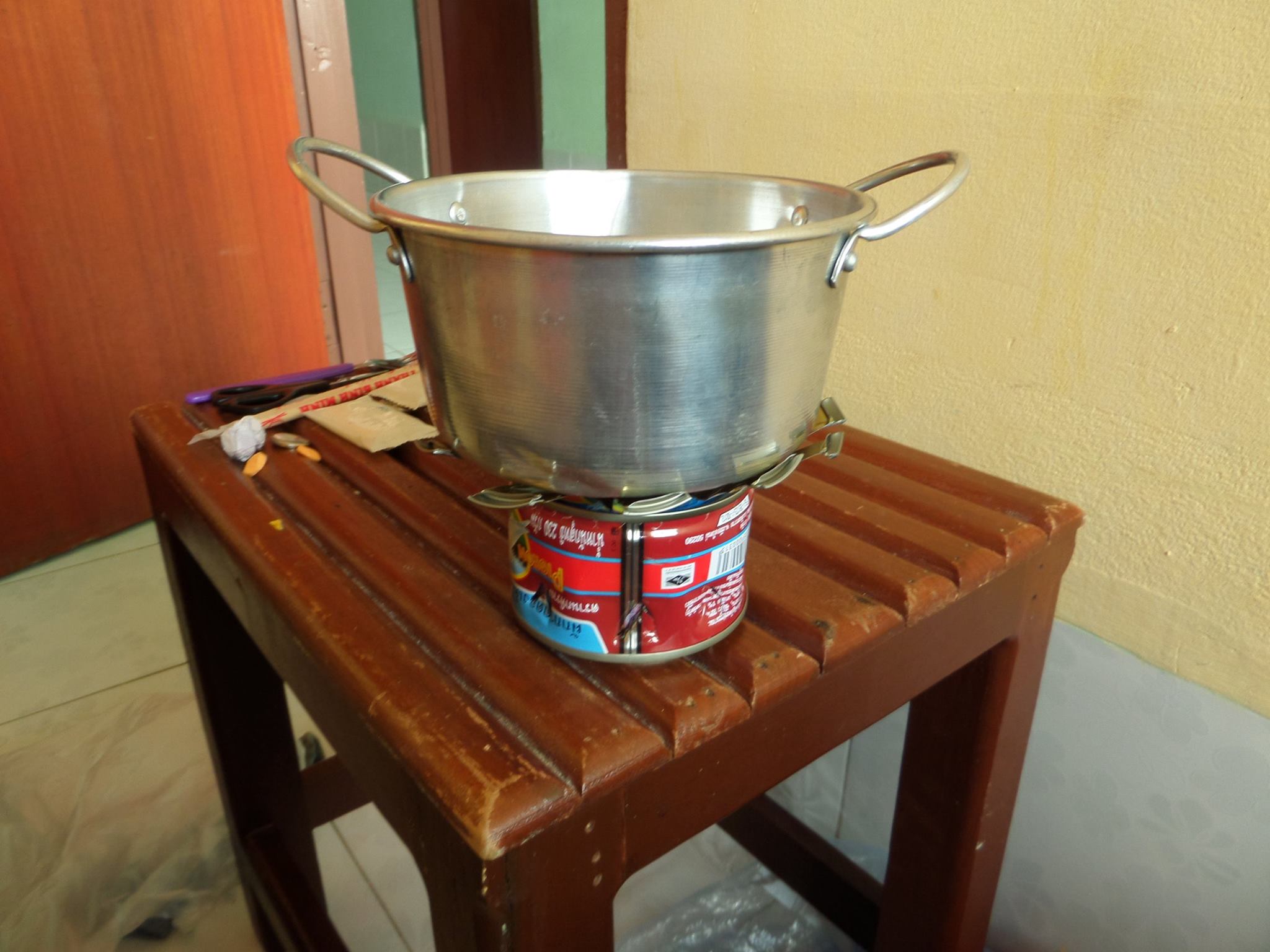 During our time in Vientiane we also wanted to buy a camping stove but couldn't find one anywhere so we had to get creative and make our own 'cat stove'. This was made from tins and is used by putting in some high grade alcohol which we bought in a hardware shop (we were a little worried about the fumes as it had a skull and crossbone on it!).