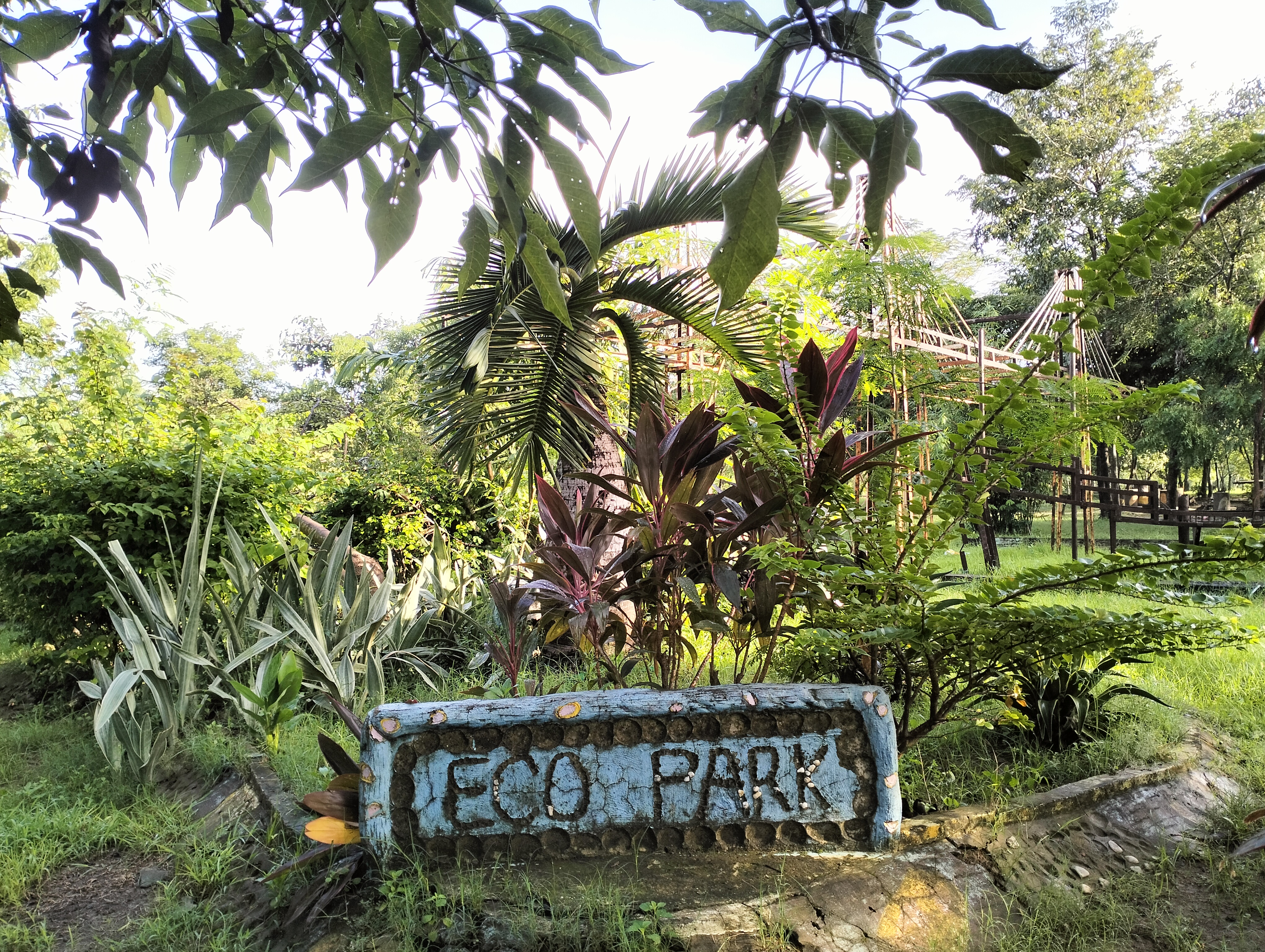 Near the entrance is the Eco Park , a park with a chapel and day care center for children . It has also different flowering plants, shrubs, and trees. It is also sorrounded with different animal figure to make the park more attractive and enjoyable.