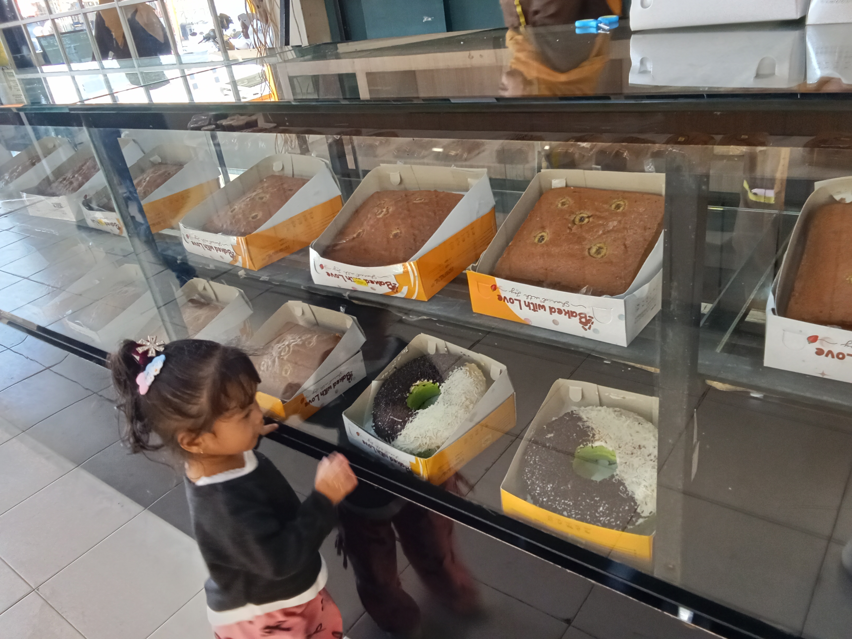 Di sini aku sedang mencari kue untuk ulang tahun anak aku dan juga kue biasa yang ingin aku nikmati bersama keluarga, karena aku sudah beberapa kali beli di toko kue ini sangat enak, dan tidak mengecewakan, semua sangat lezat dan mantap.