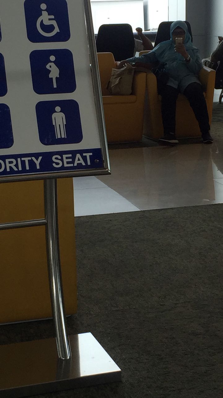 Satu lagi kenyamanan yang ditawarkan di setiap ruang tunggu gate adalah kursi dengan area khusus bertanda priority dengan gambar ibu hamil, lansia, dan berkebutuhan khusus lainnya. Biasanya kursi khusus ini berbentuk sofa yang nyaman yang diberi pembatas berupa tali khusus sebagai pembatas dengan kursi lainnya yang diperuntukkan untuk penumpang lainnya.