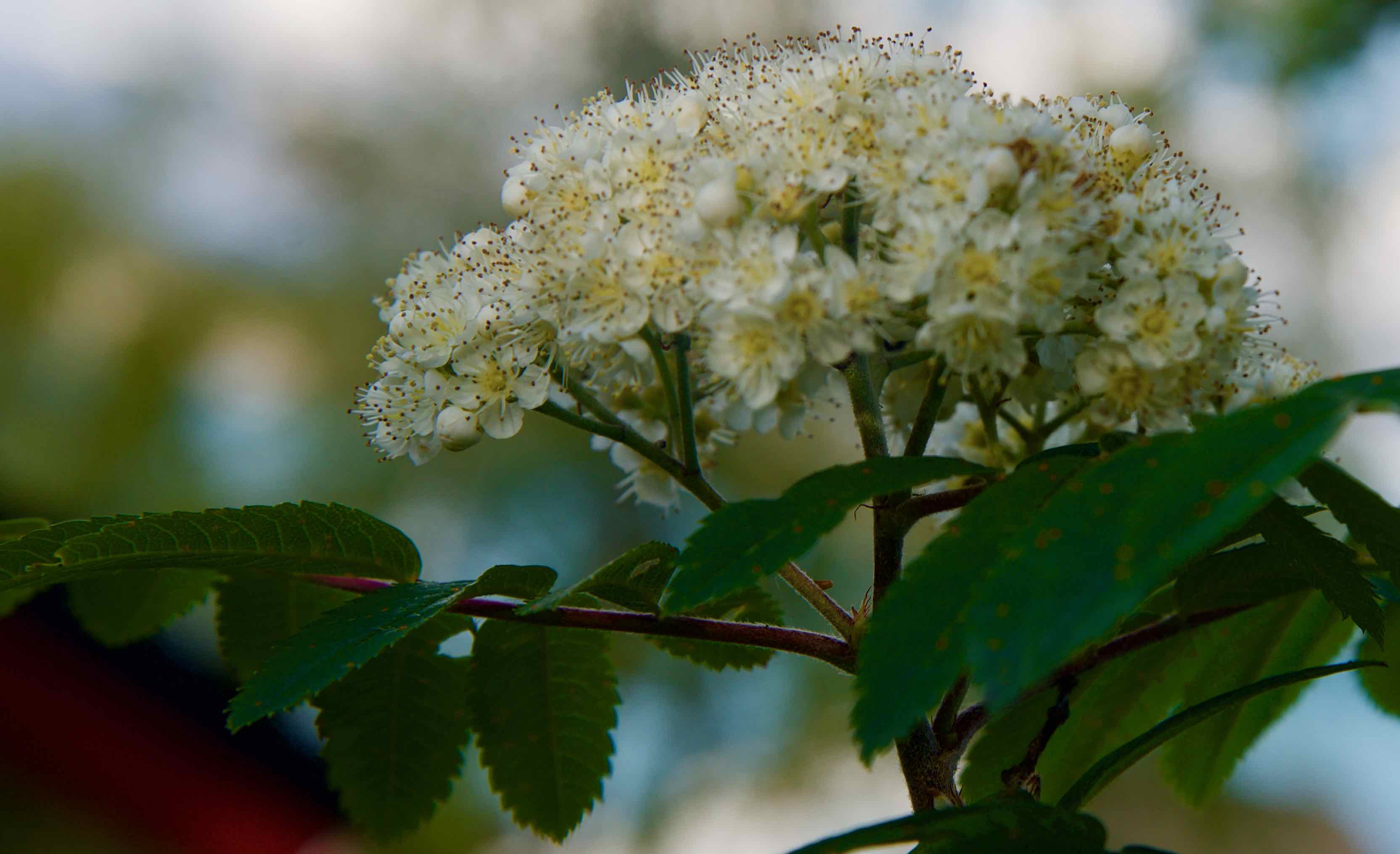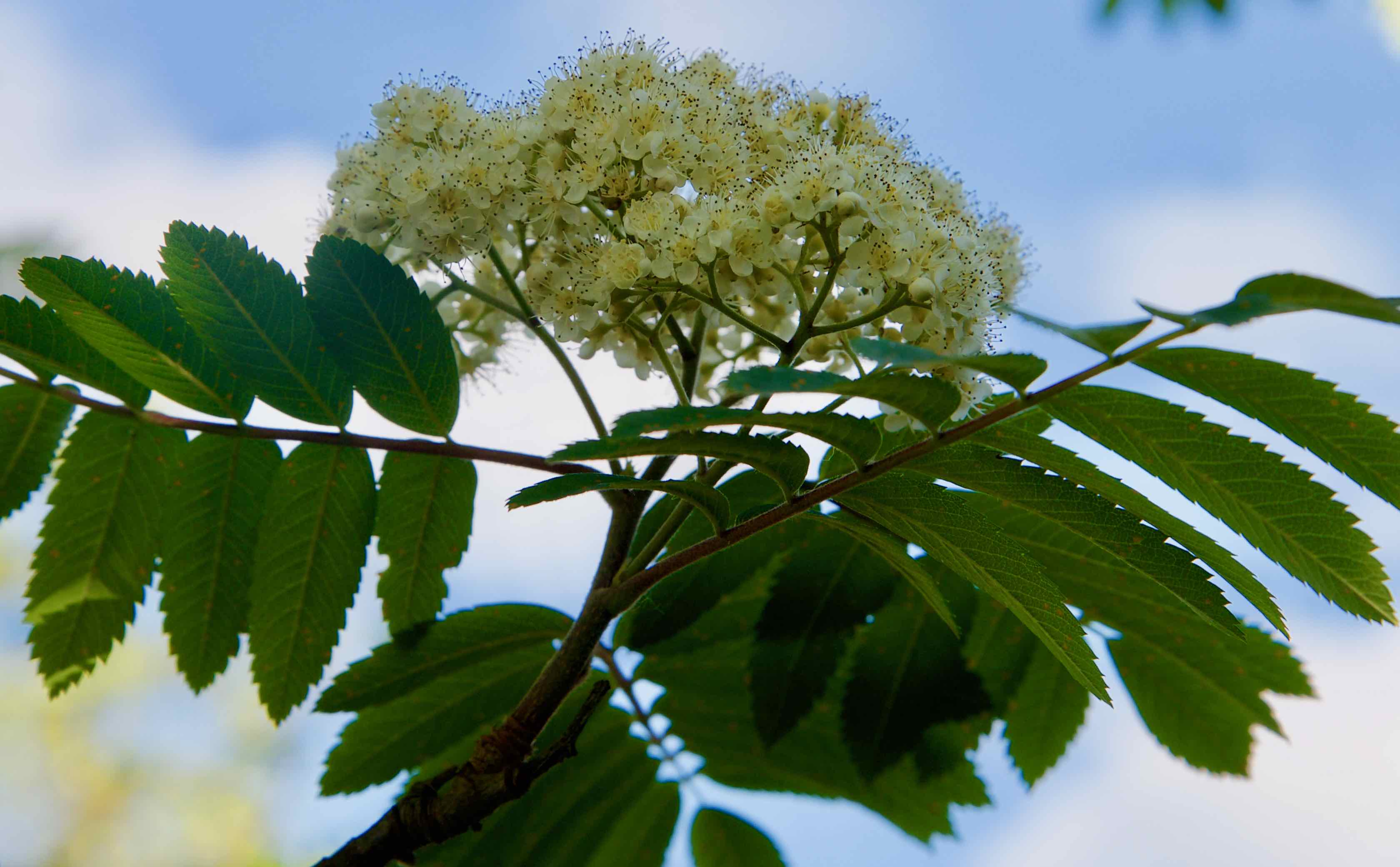 The pictures show some pictures of flowering Rowan tree photographed a couple of days ago.