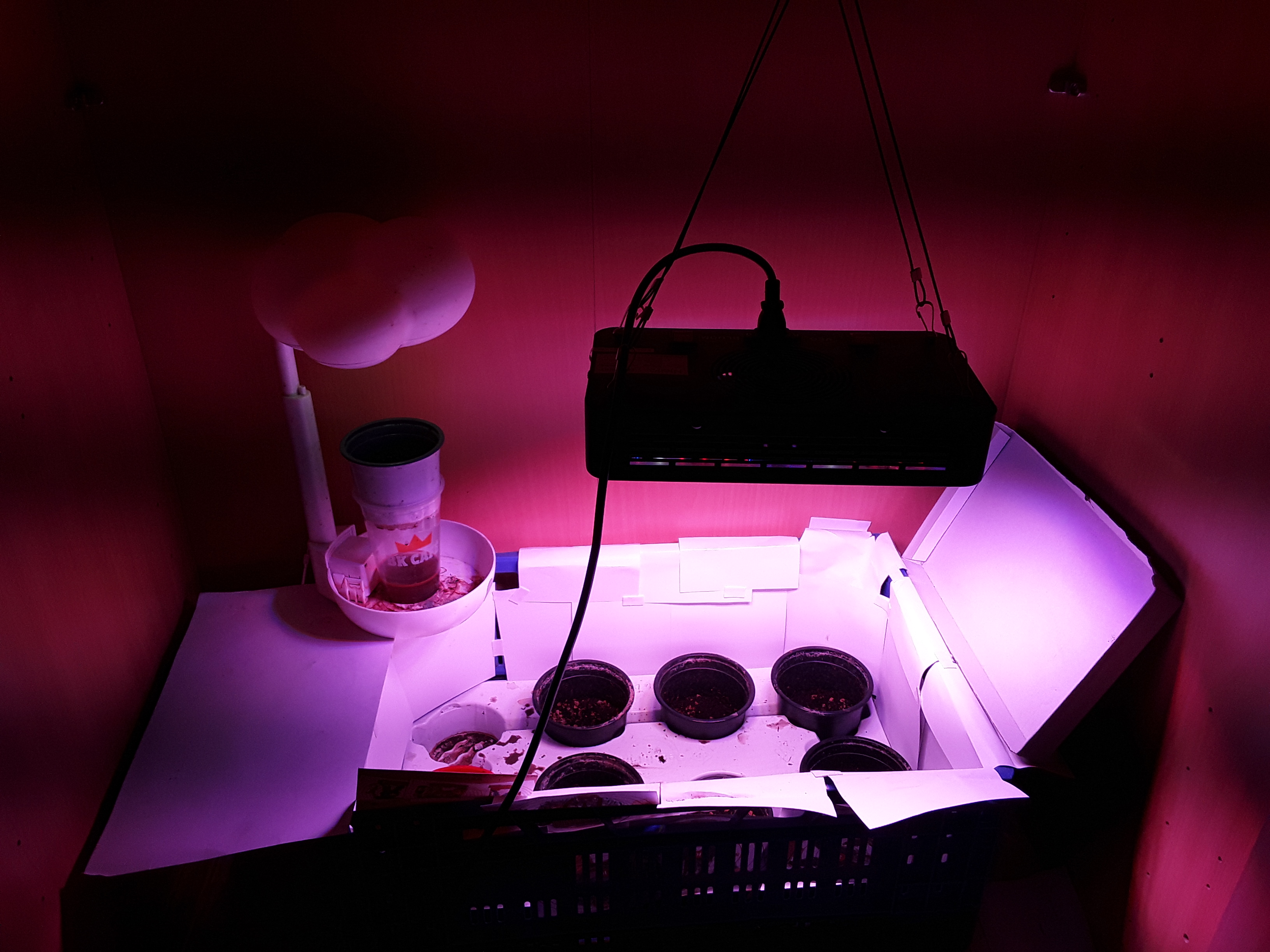 Well guys i was able to get back into my account... i welcome myself back and am very exited to be back. So I just recently started a new Grow Up In My Closet now right now it's not as it should be because I just started yesterday but soon it will be done and I will be posting way more pictures of the outcome ,I have a couple of La confidential a couple sour diesel and one of my favorites ,headband. I am useing a 300 watt niello led light that has 2 options, 1 for veg which is more blue spectrum and the other option is for bloom, a more reddish spectrum..for now.. After they start to flower i will switch to a 1000watter...